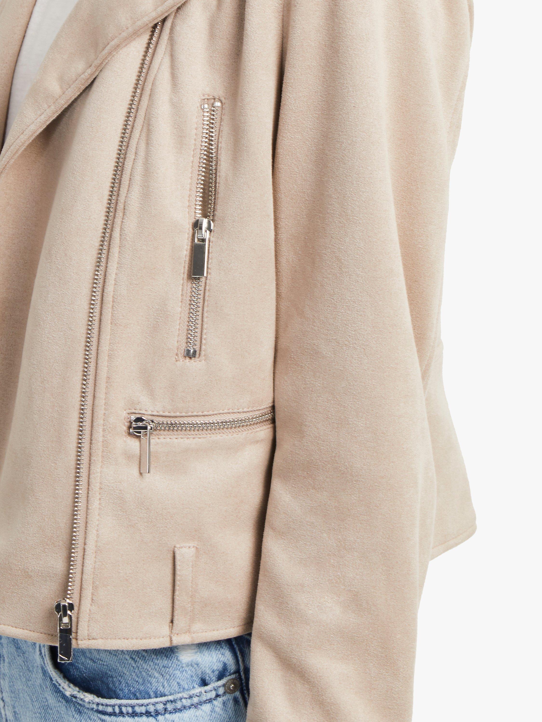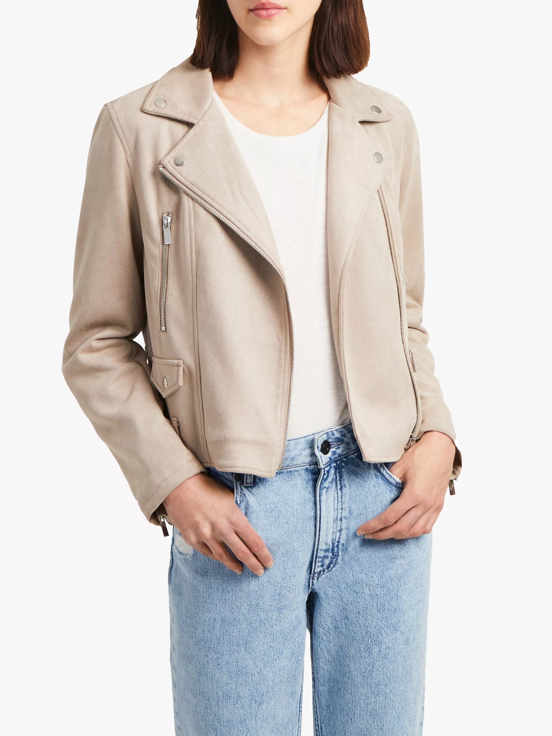 The Aimee jacket from French Connection is a cool, understated way of bringing an edgy, urban vibe to your weekend outfitting. With a supple and smooth suede-like finish, its minimalist design with multiple zips as well and metallic snap fastenings enhances its urban look. Layer yours over printed tees and cropped jeans for easy off-duty ensemble.