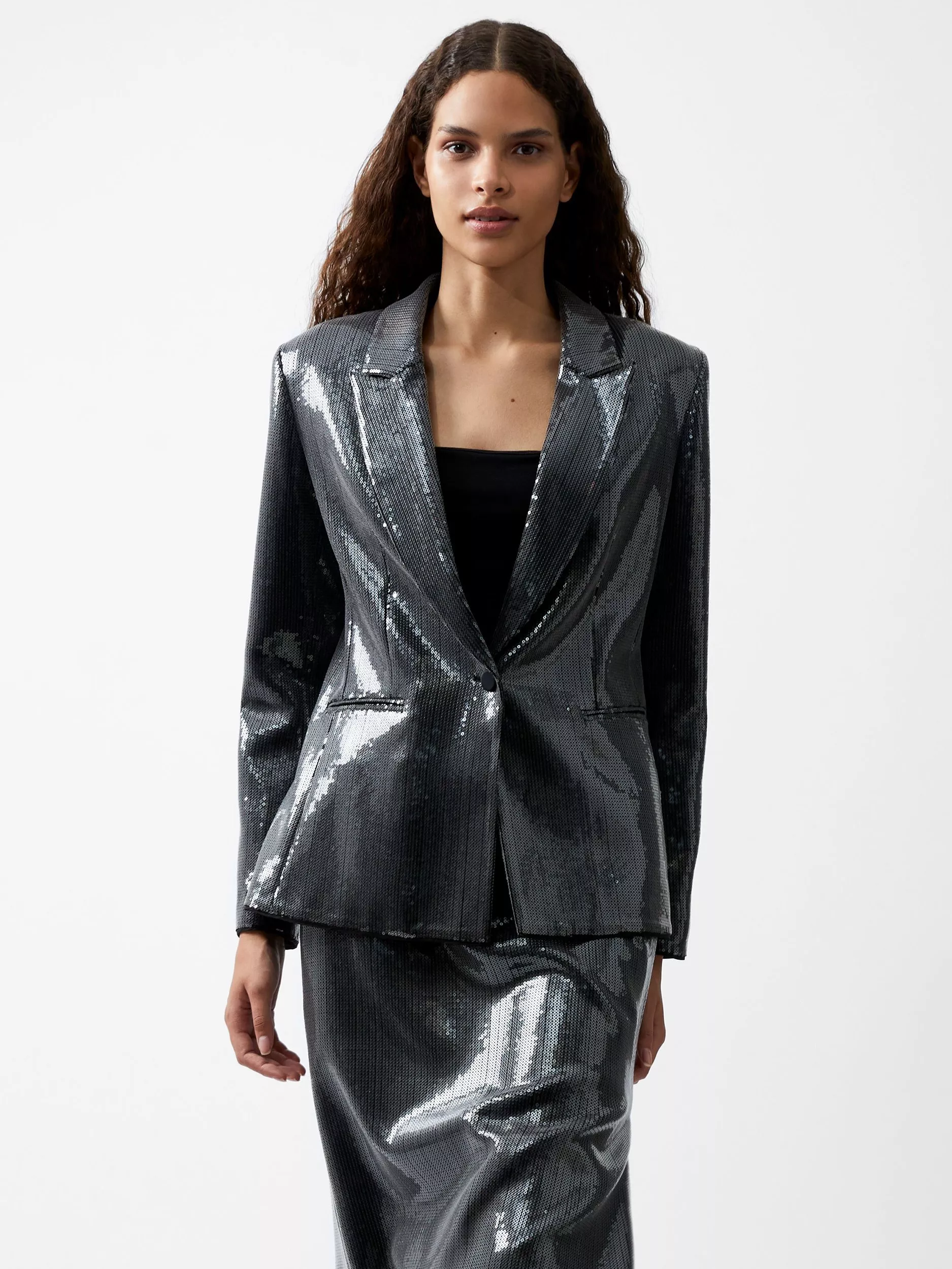Add some sparkle to your suiting this party season with French Connection's Amy Sequin Blazer. This scintillating single-breasted blazer takes tailoring to new heights, adorned with shimmering silver sequins from its split lapel collar down to its long sleeves and decorative welt pockets.