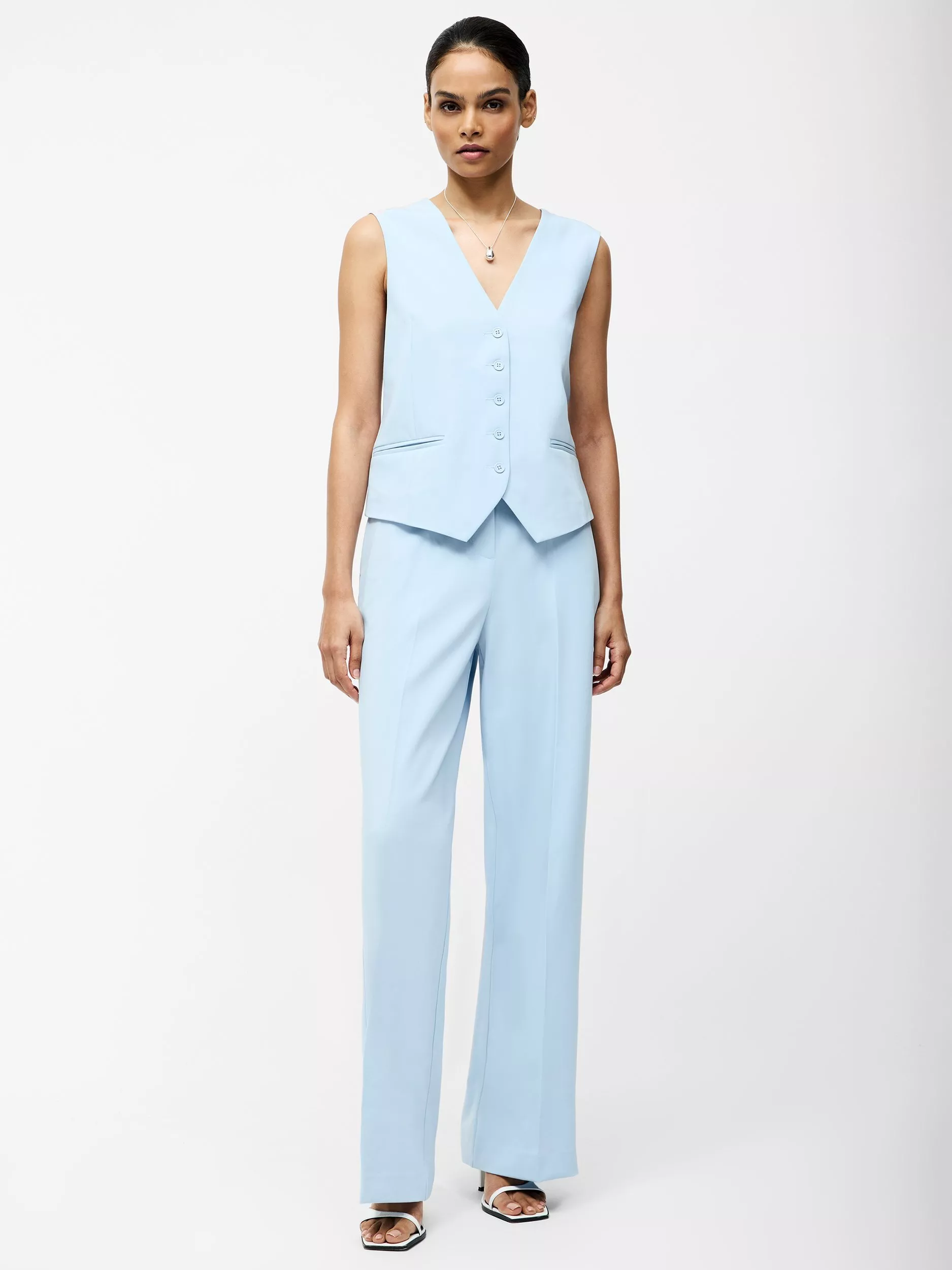 Summer suiting is here to stay. The Angie Waistcoat refreshes traditional tailoring in a chic sunshine shade whilst maintaining its sophistication with a button through fastening and pair of faux welt pockets.