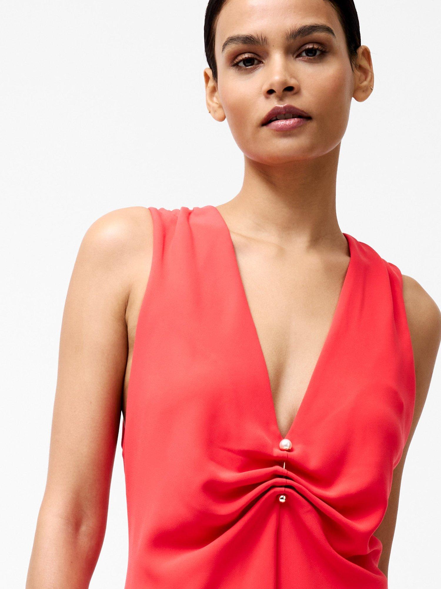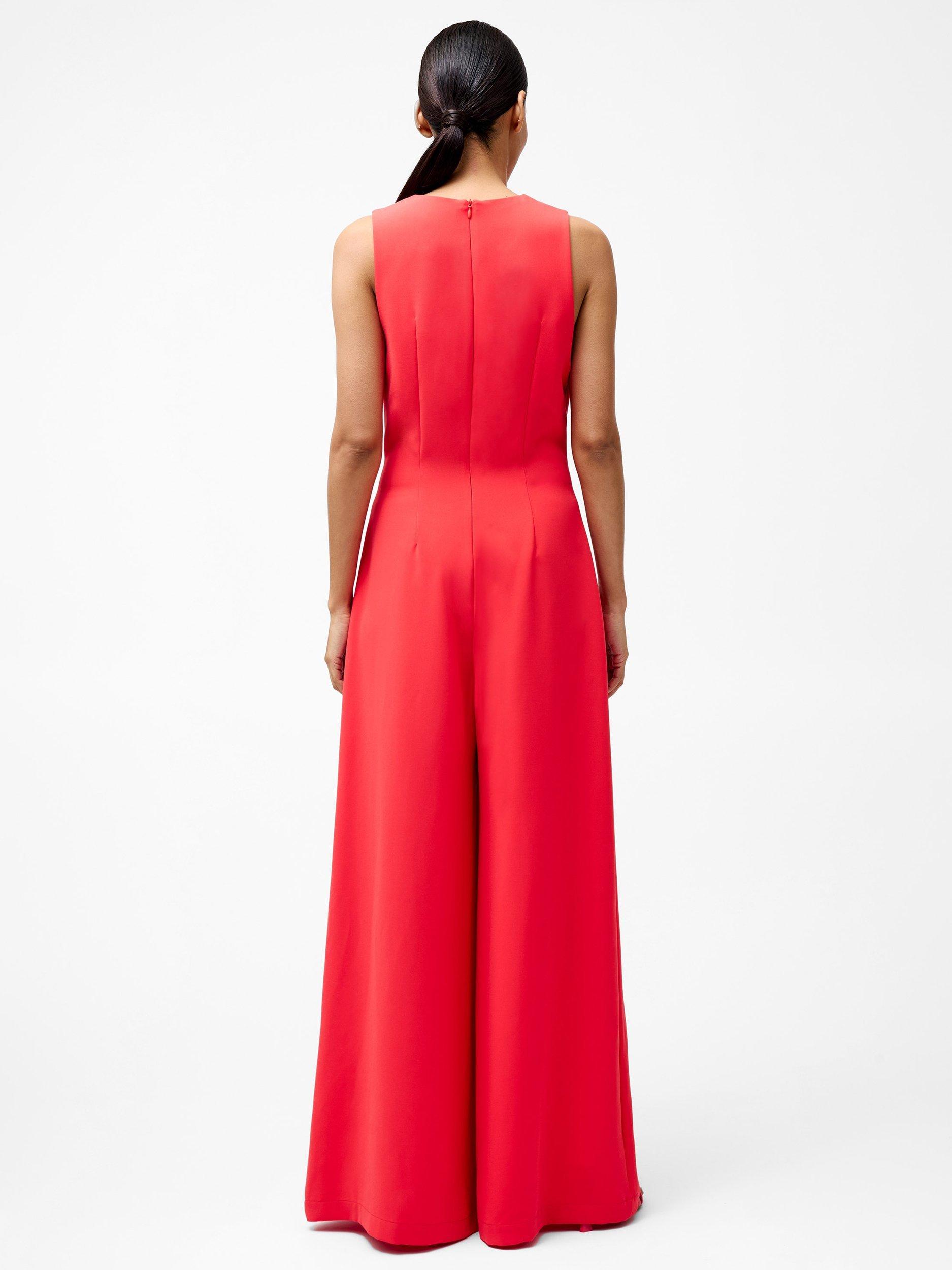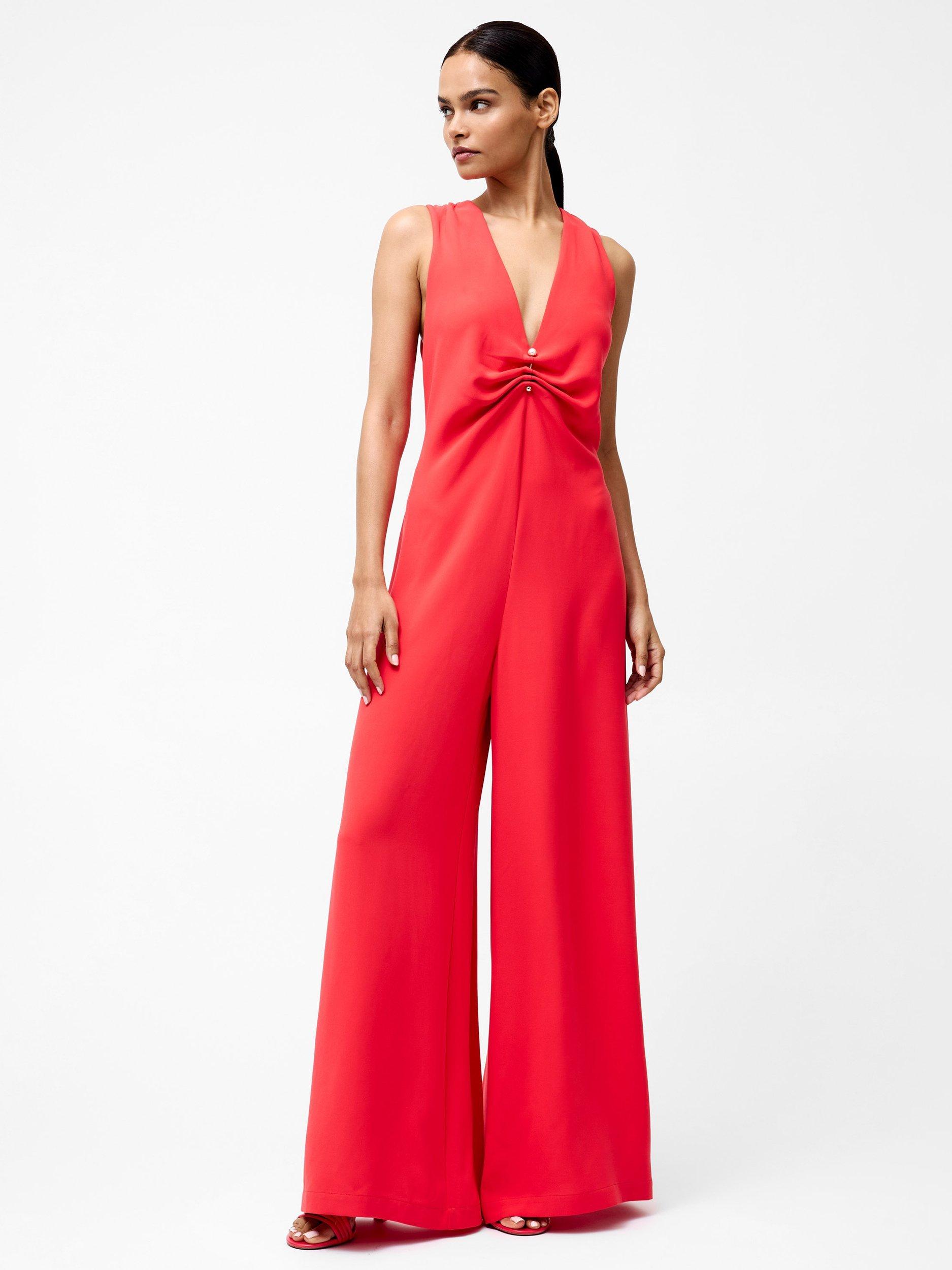 A real jaw-dropper, the Arlette Wide Leg Jumpsuit from French Connection is a bold one-piece that features a sleeveless silhouette with floaty wide fit legs, ruched shoulders, a v-neckline and a modern metal bar trim. It sure knows how to make an entrance.