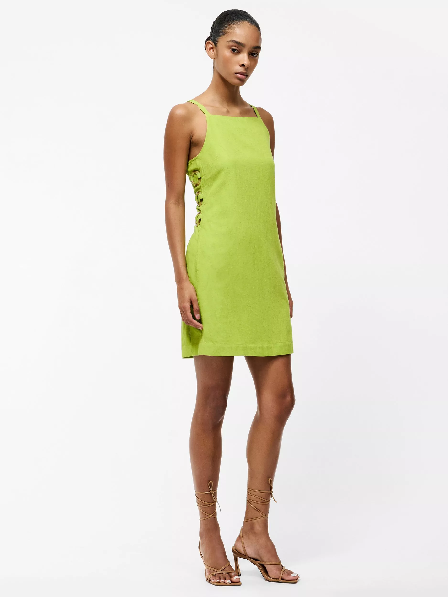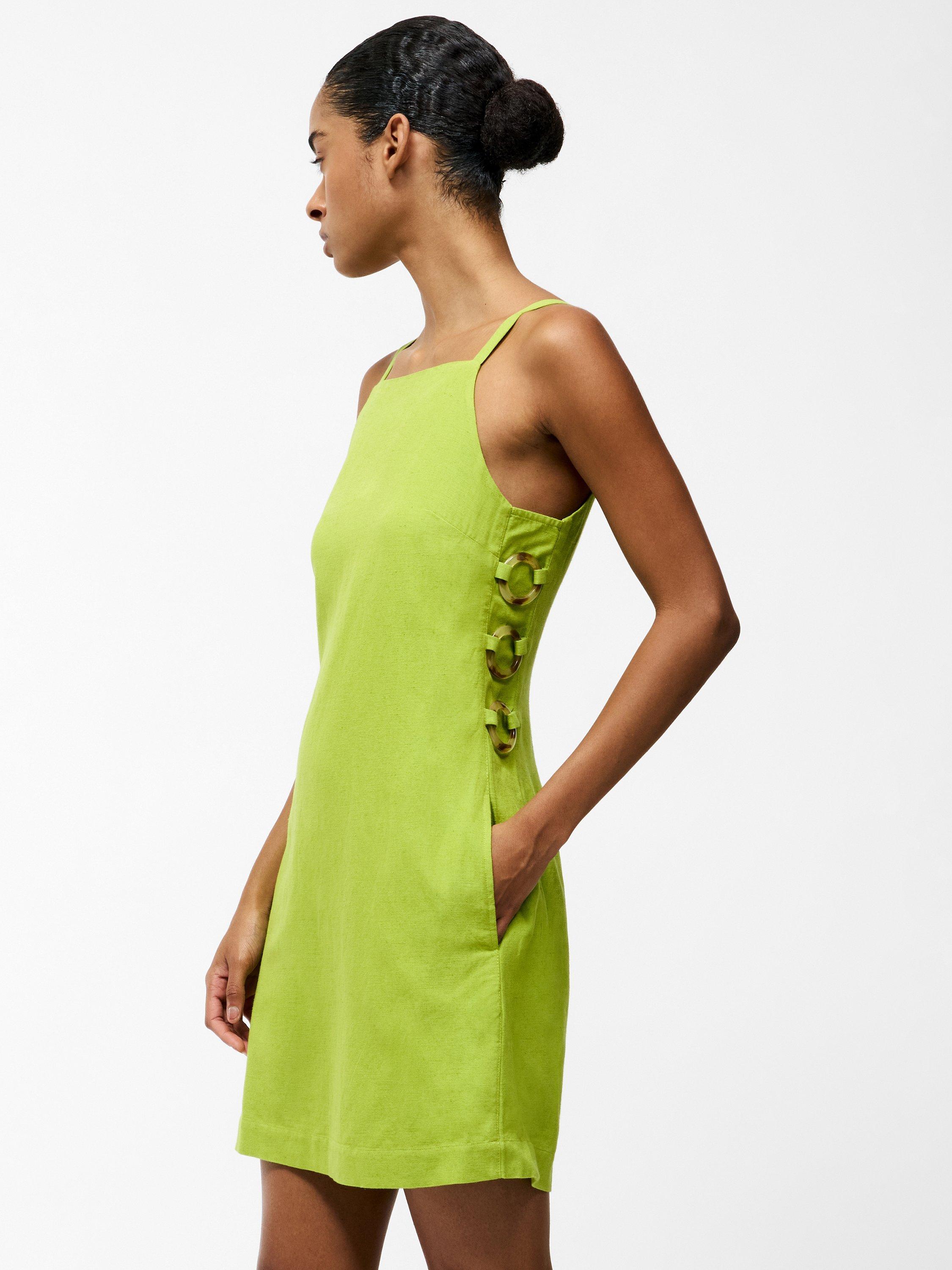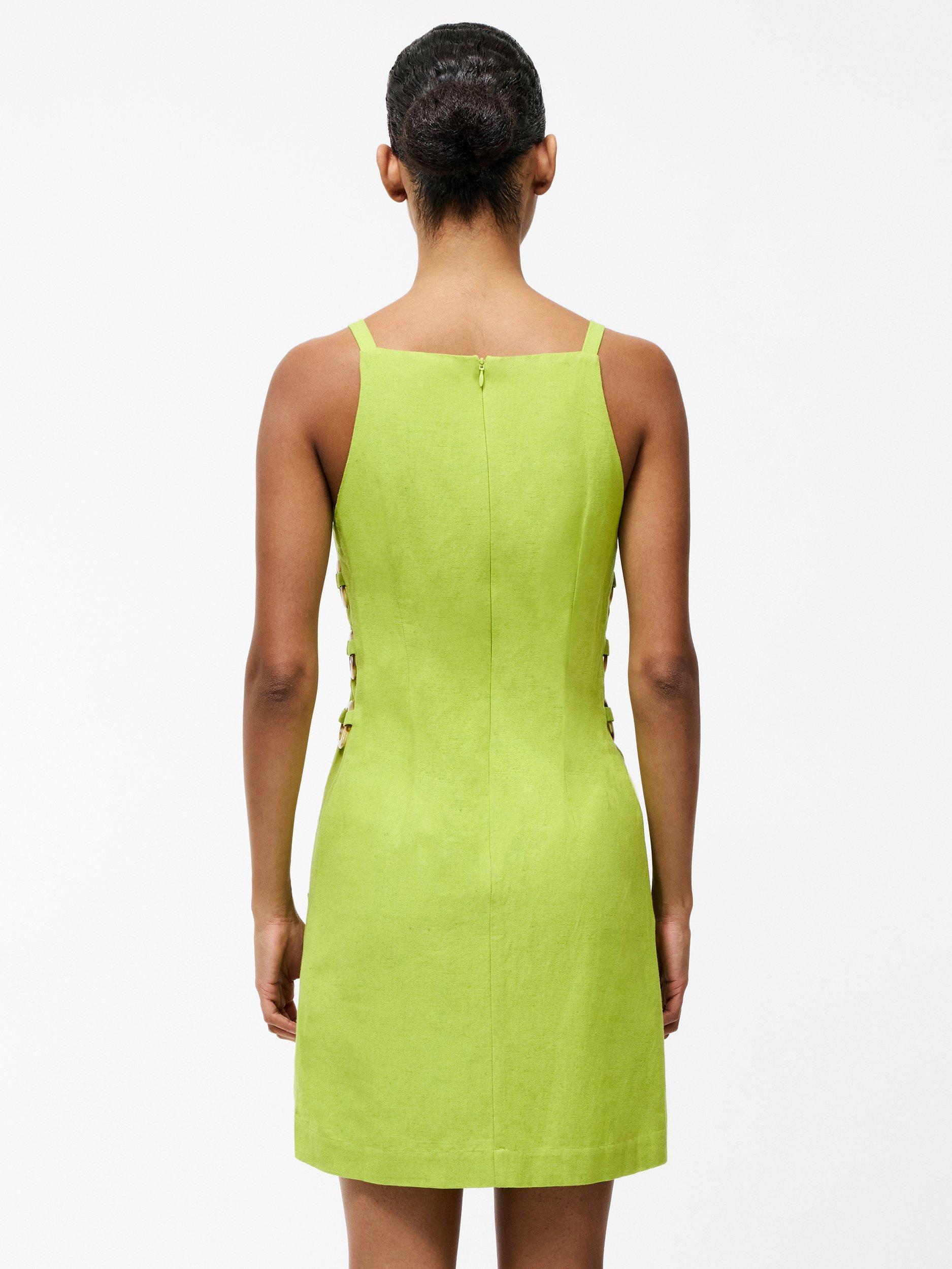 The Ariette Mini Dress is as playful as it is chic. This summer dress stars in a lightweight fabric with a smooth mini length silhouette uplifted by side ring details. Slip it on with sandals for an effortless daytime look or style it up with heels for sunset cocktails.