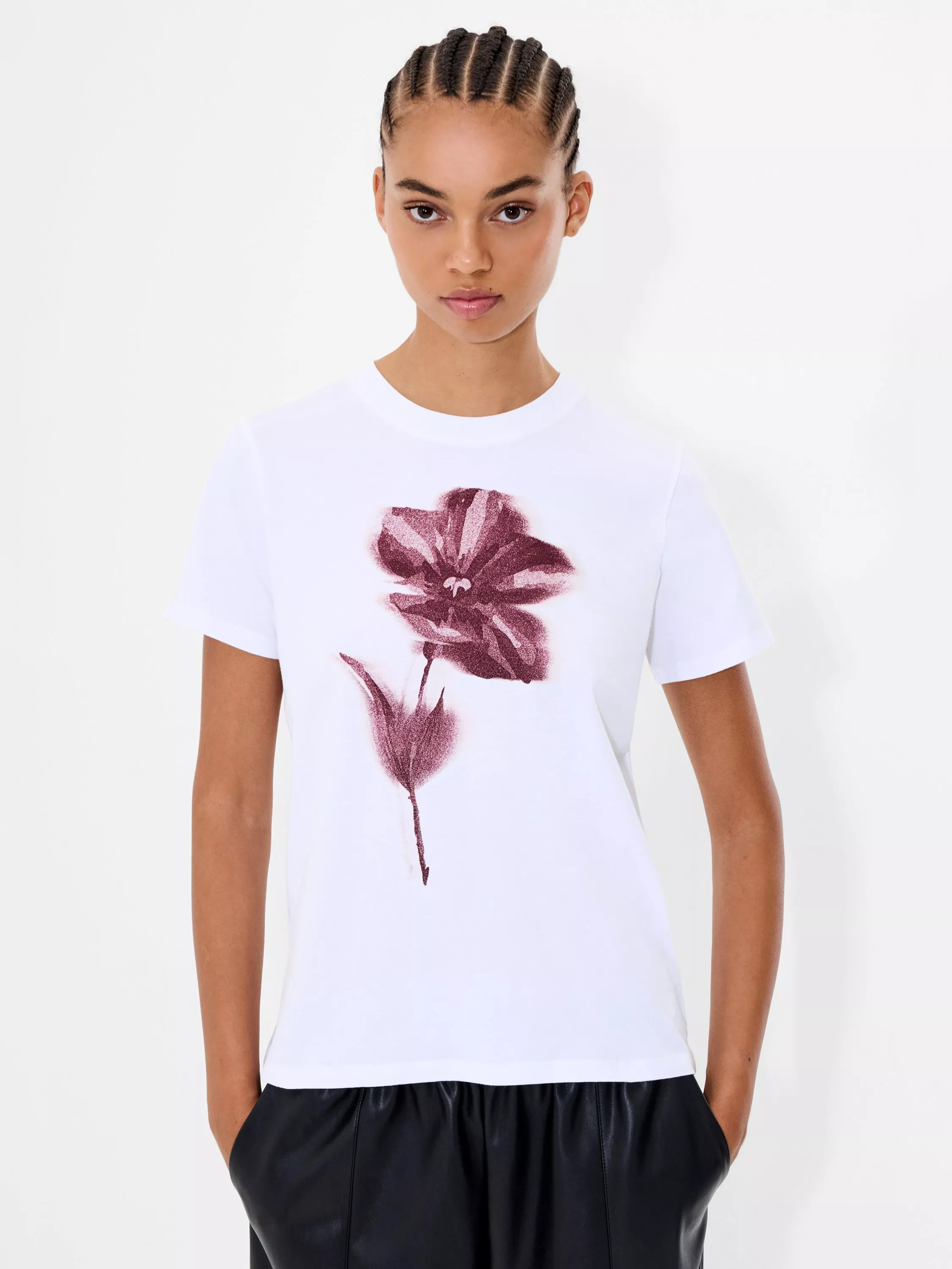 Say it with flowers. This soft cotton Blurred Floral Short Sleeve T-Shirt brings a bold brushstroke floral print to its short-sleeved silhouette.
