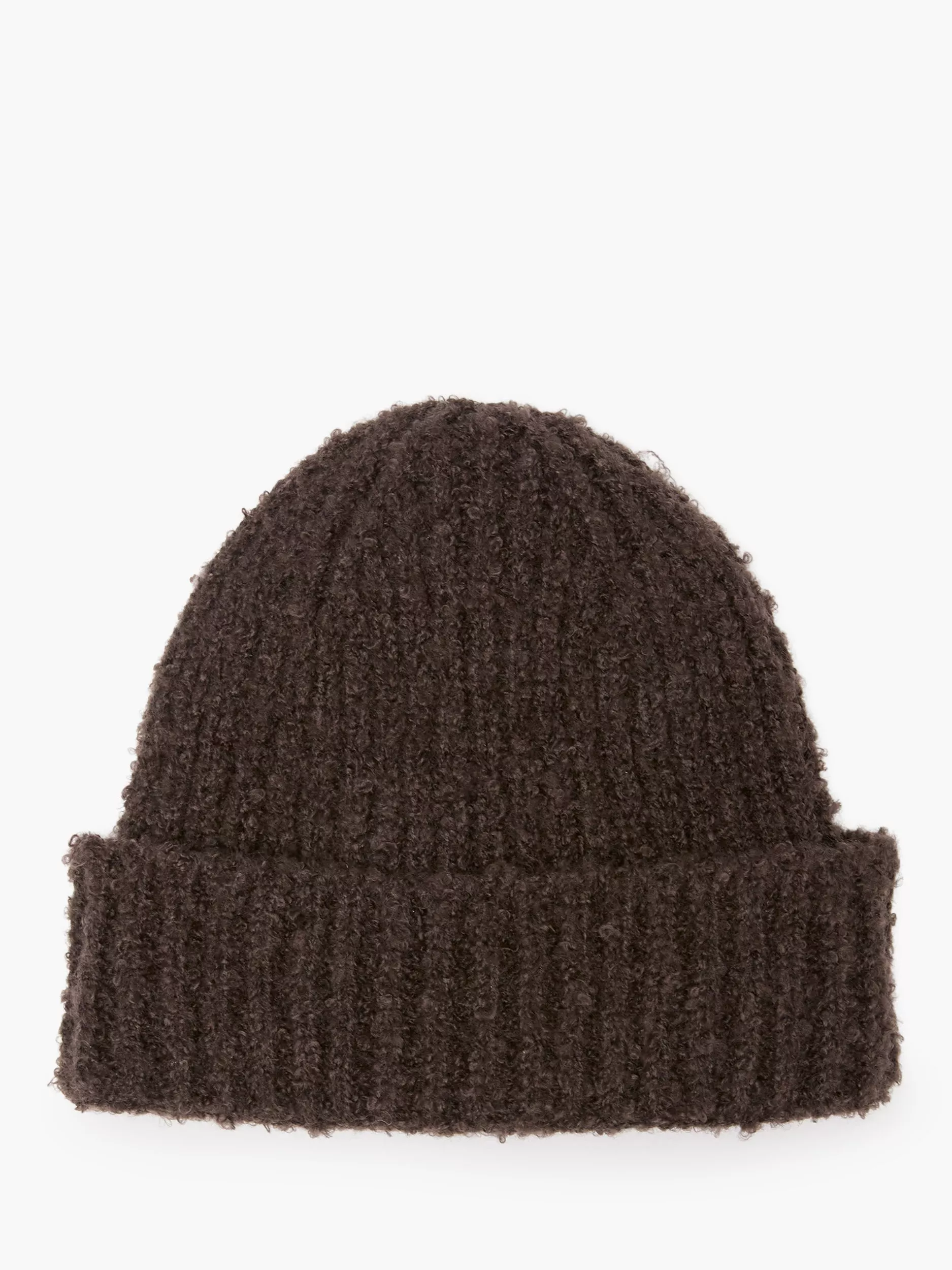 Keep it snug, keep it stylish. This Chocolate Boucle Beanie Hat is crafted from a soft, textured ribbed knit with a fold-over cuff for a cosy, contemporary finish.