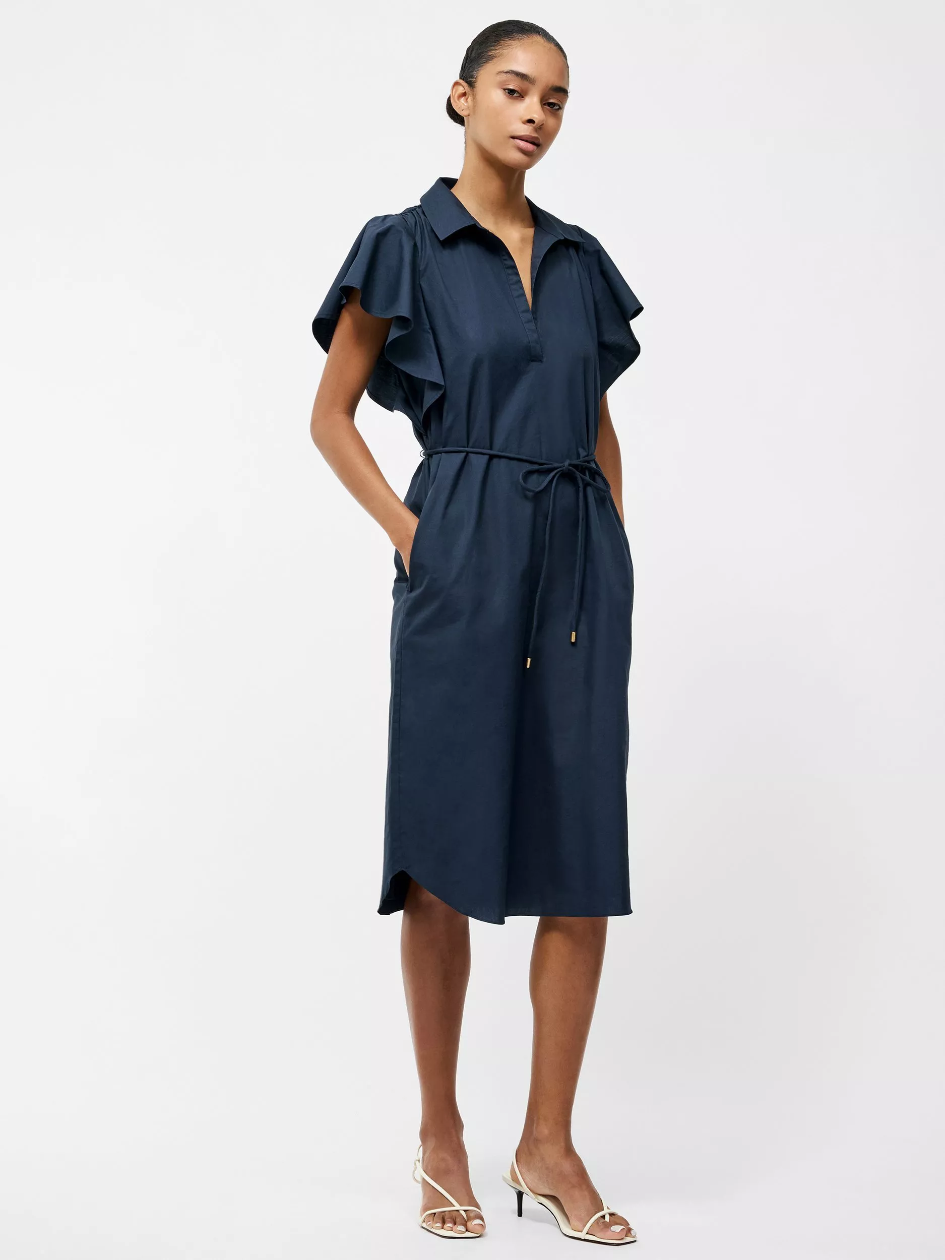 The Cambria Cotton Belted Dress is the embodiment of effortless charm, perfect for those who appreciate understated elegance, with a subtle collar and buttoned neckline blending structure with the femininity of its v neckline and short flutter sleeves. A rope self tie belt with metal ends brings this style together embracing simplicity with a hint of playful sophistication. Wear with sandals for a casual day out or dress up with sleek accessories.