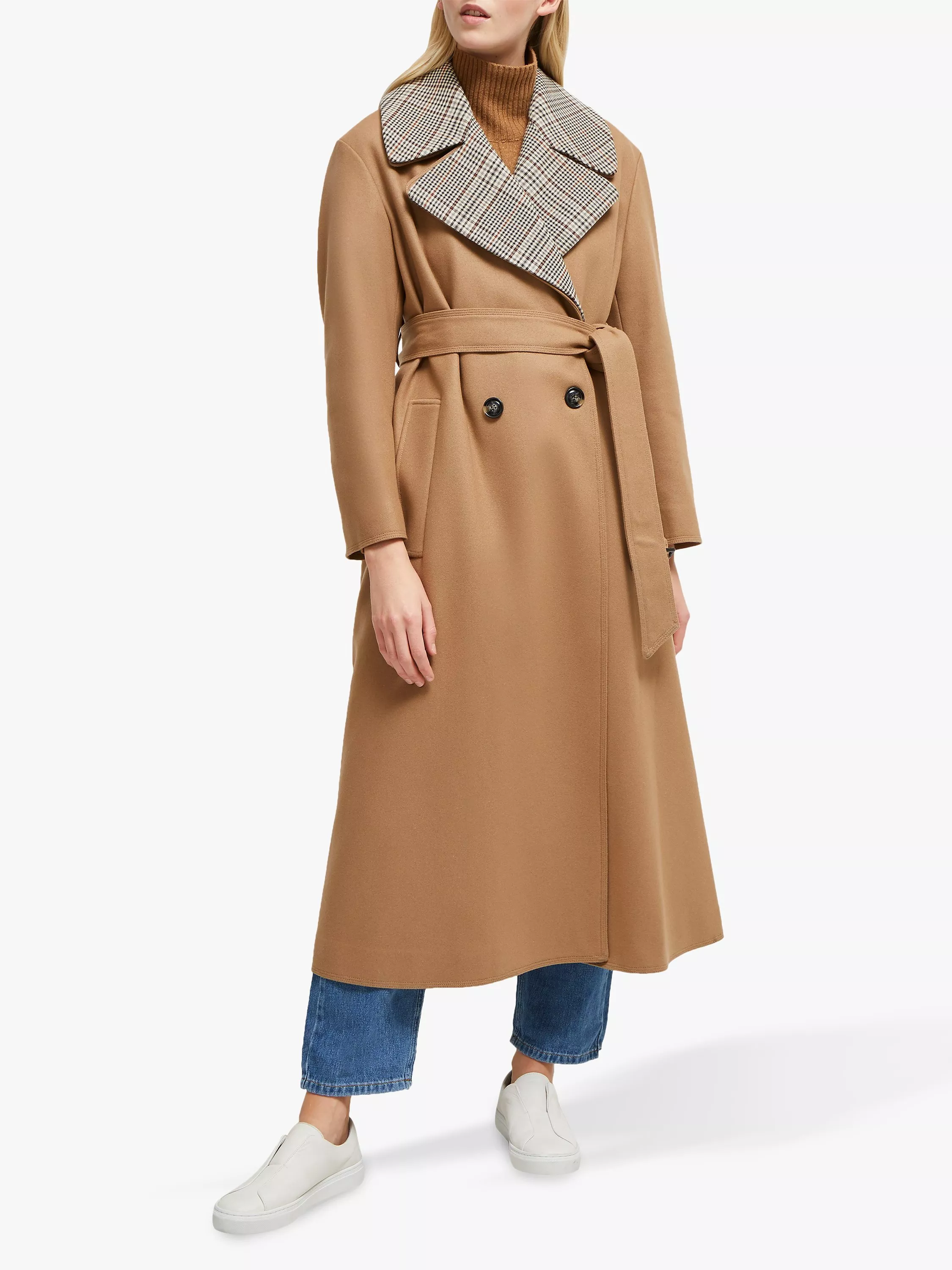 Made to a classic double-breasted design with an oversized fit for maximum protection, this Carmelita coat from French Connection is sure to serve you well as a staple layering piece for those low-temperature days. Designed with a standout check insert at the collar for a distinct edge, this coat also comes equipped with a fabric tie belt to ensure a form-flattering silhouette.