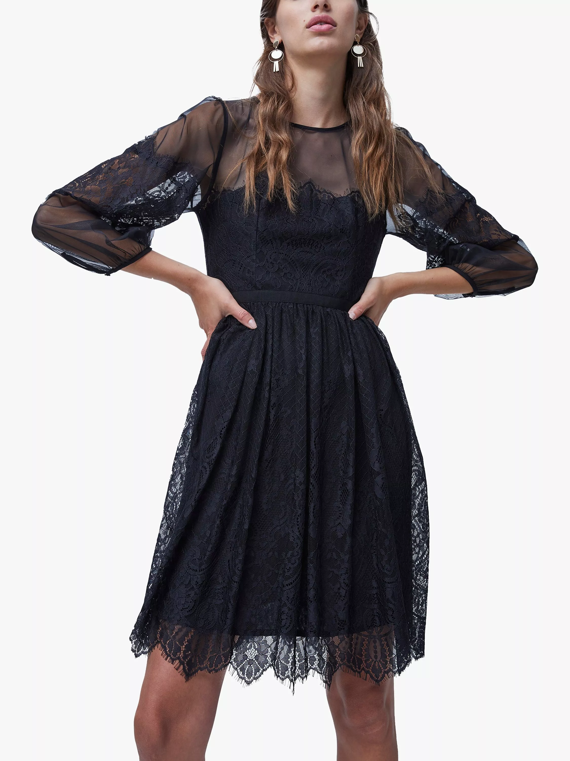 Designed with a refined round neckline, elegant sheer and lace panels and a feminine full skirt, the Chiara dress from French Connection is a smart option for winter occasions.