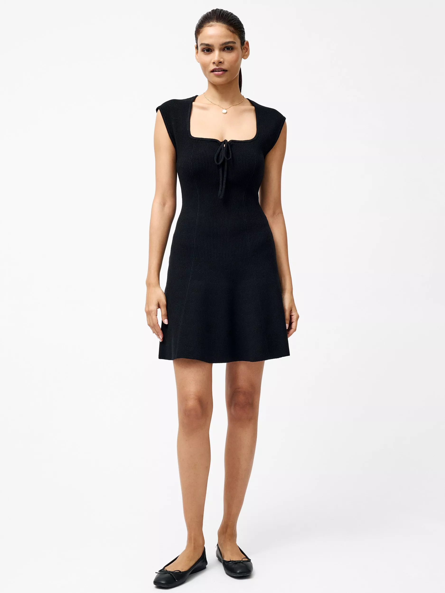 The Cosy Soft Tie Up Flared Mini Dress is the perfect flirty fit for your wardrobe. This dress features a chic tie-front neckline and cap sleeves, whilst falling to a flattering flared skirt, for a timelessly stylish look.