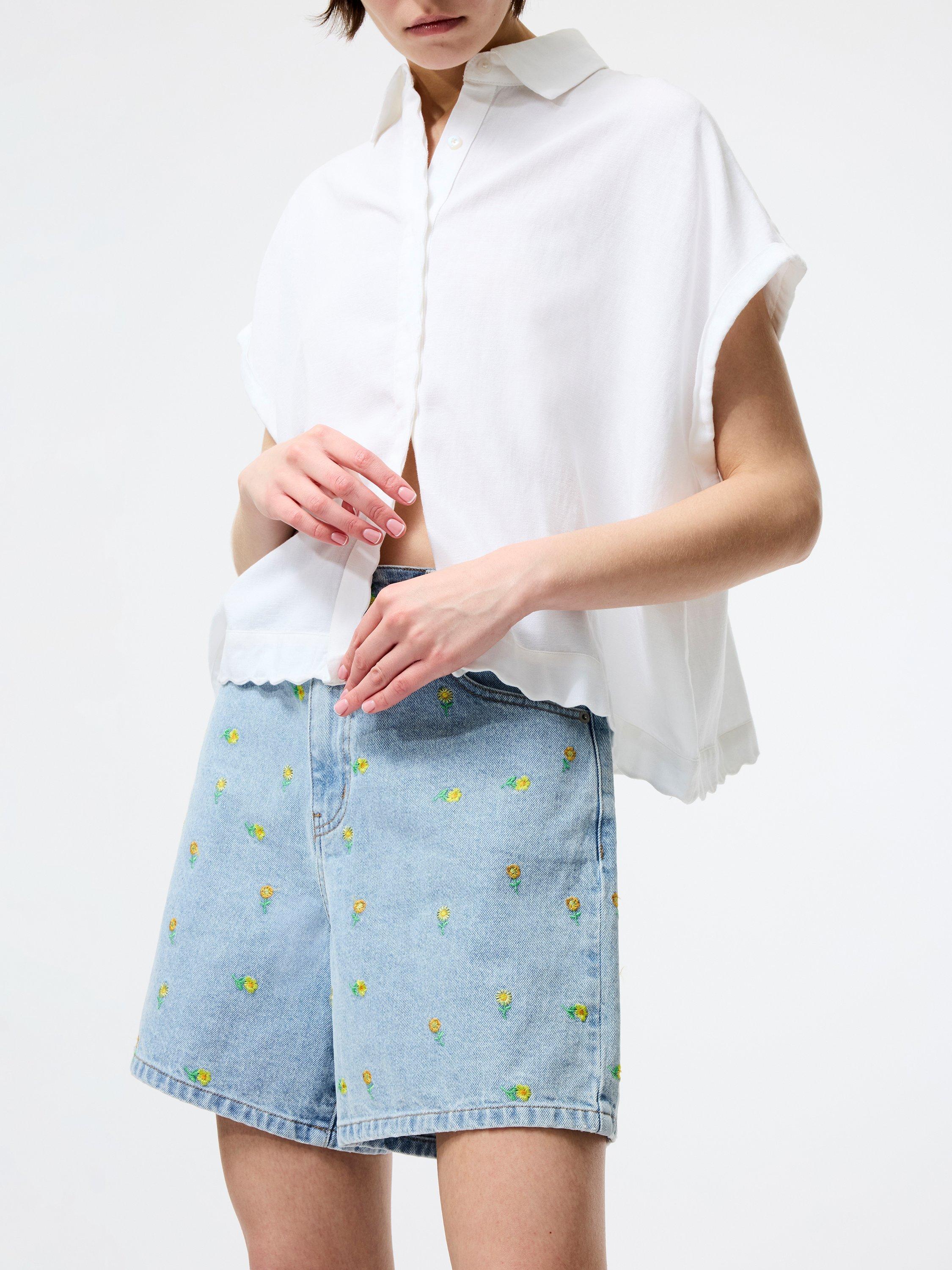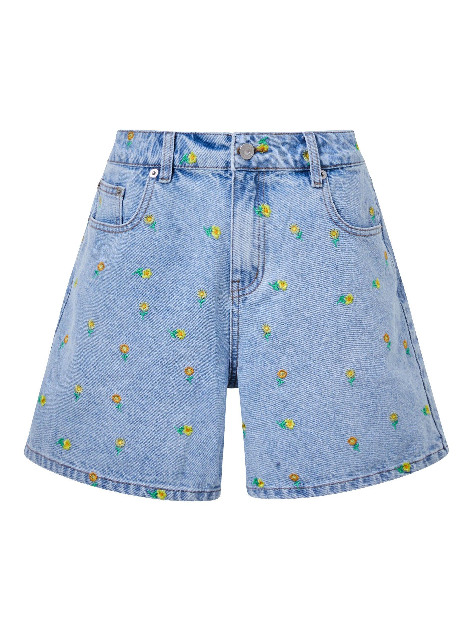 High-waisted, with belt loops and five pockets, and dainty embroidered daisies all over to give off a summer vibe.
