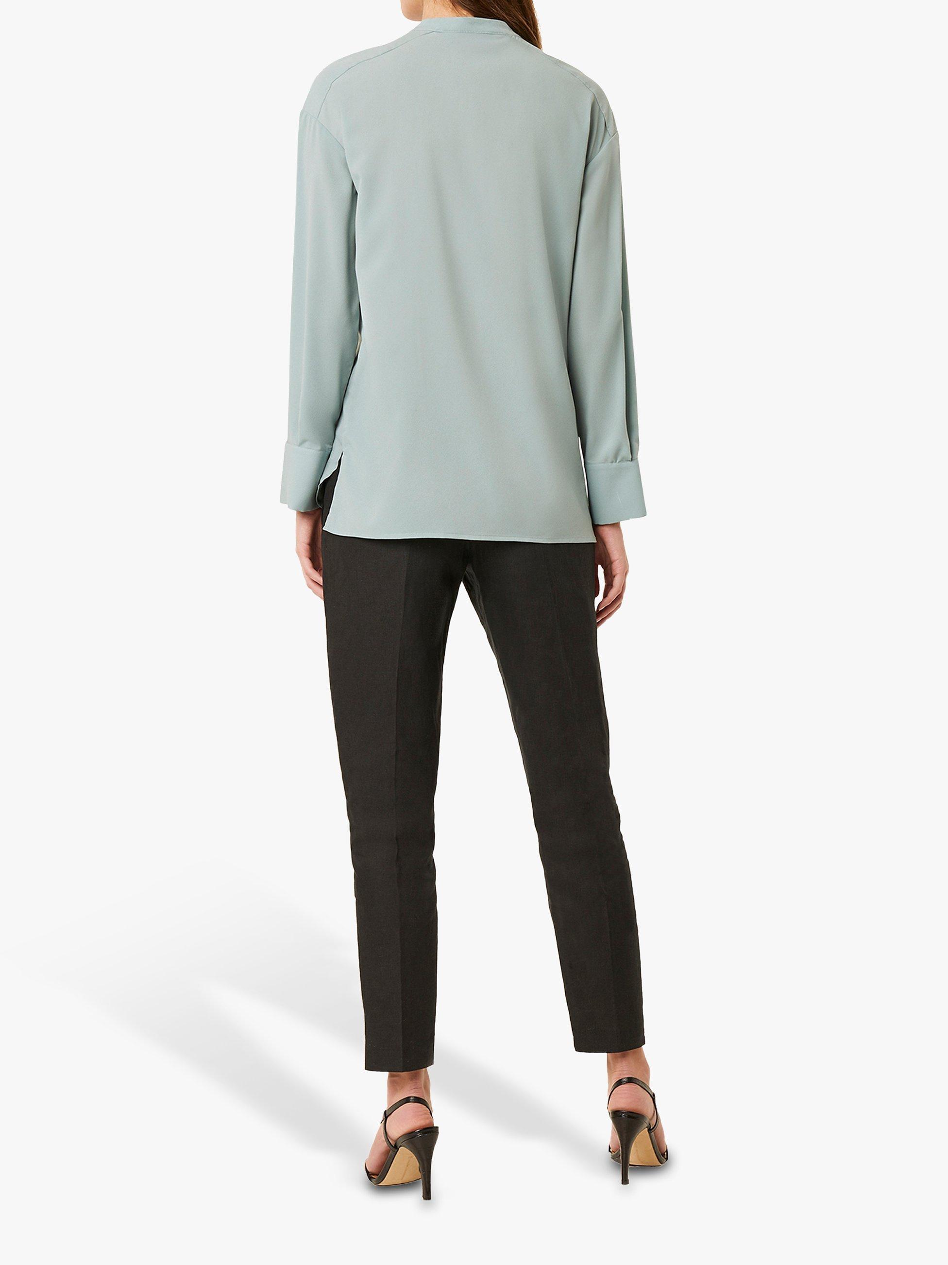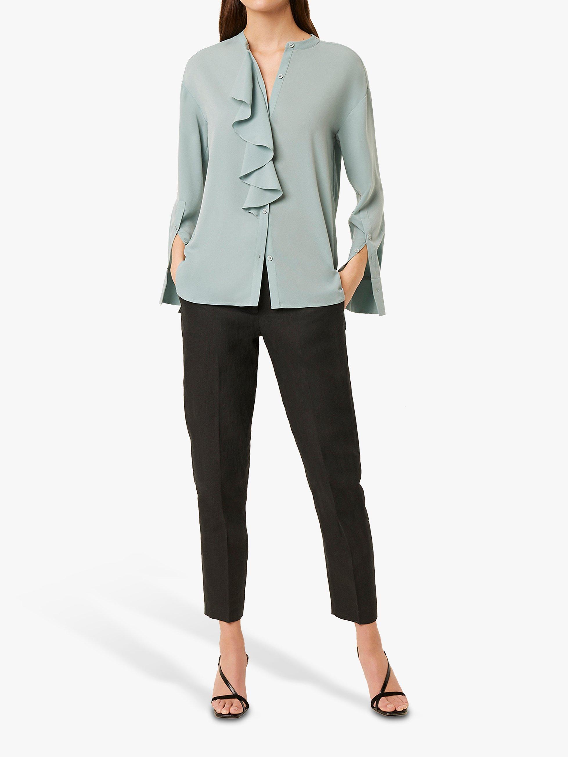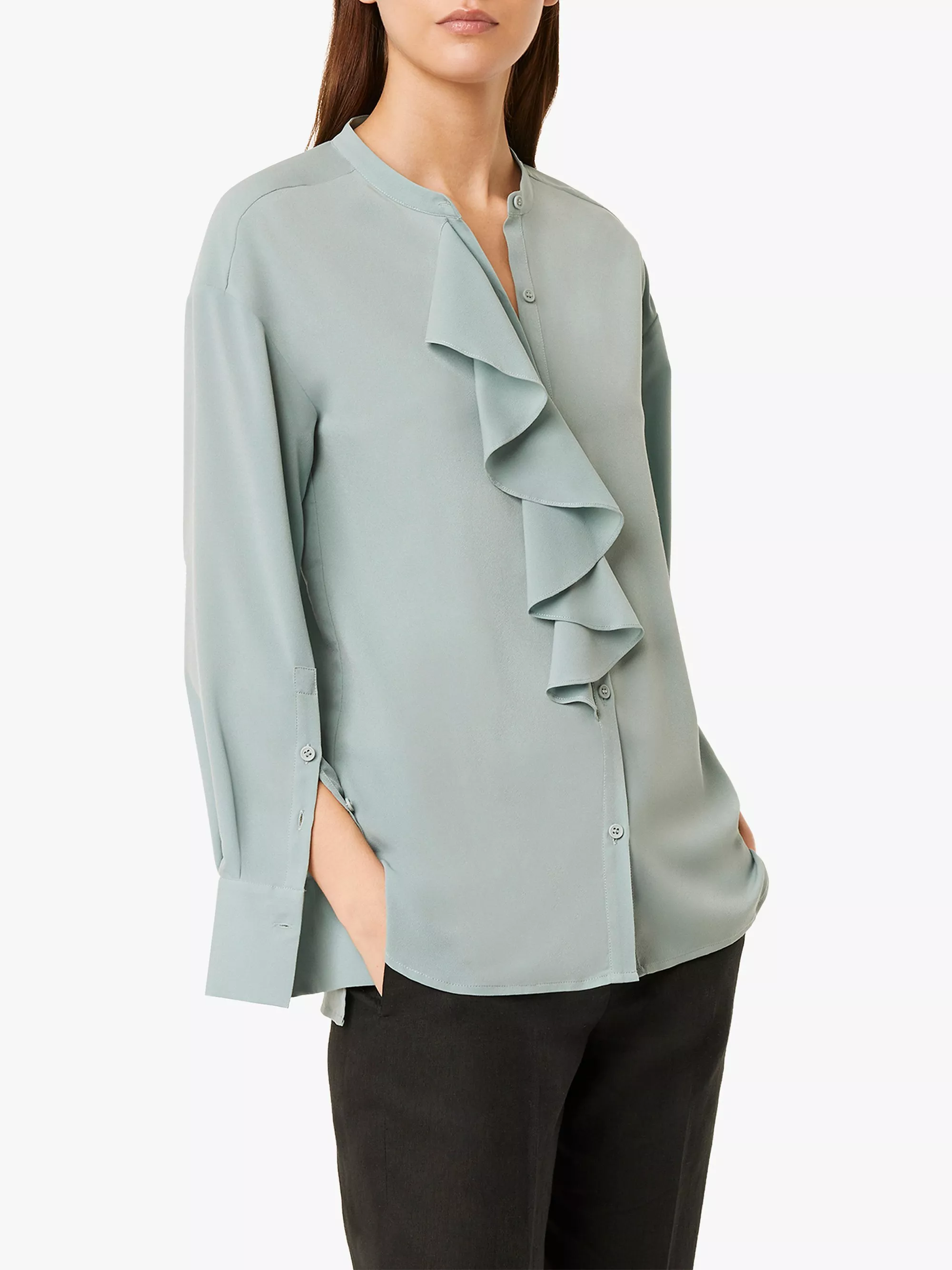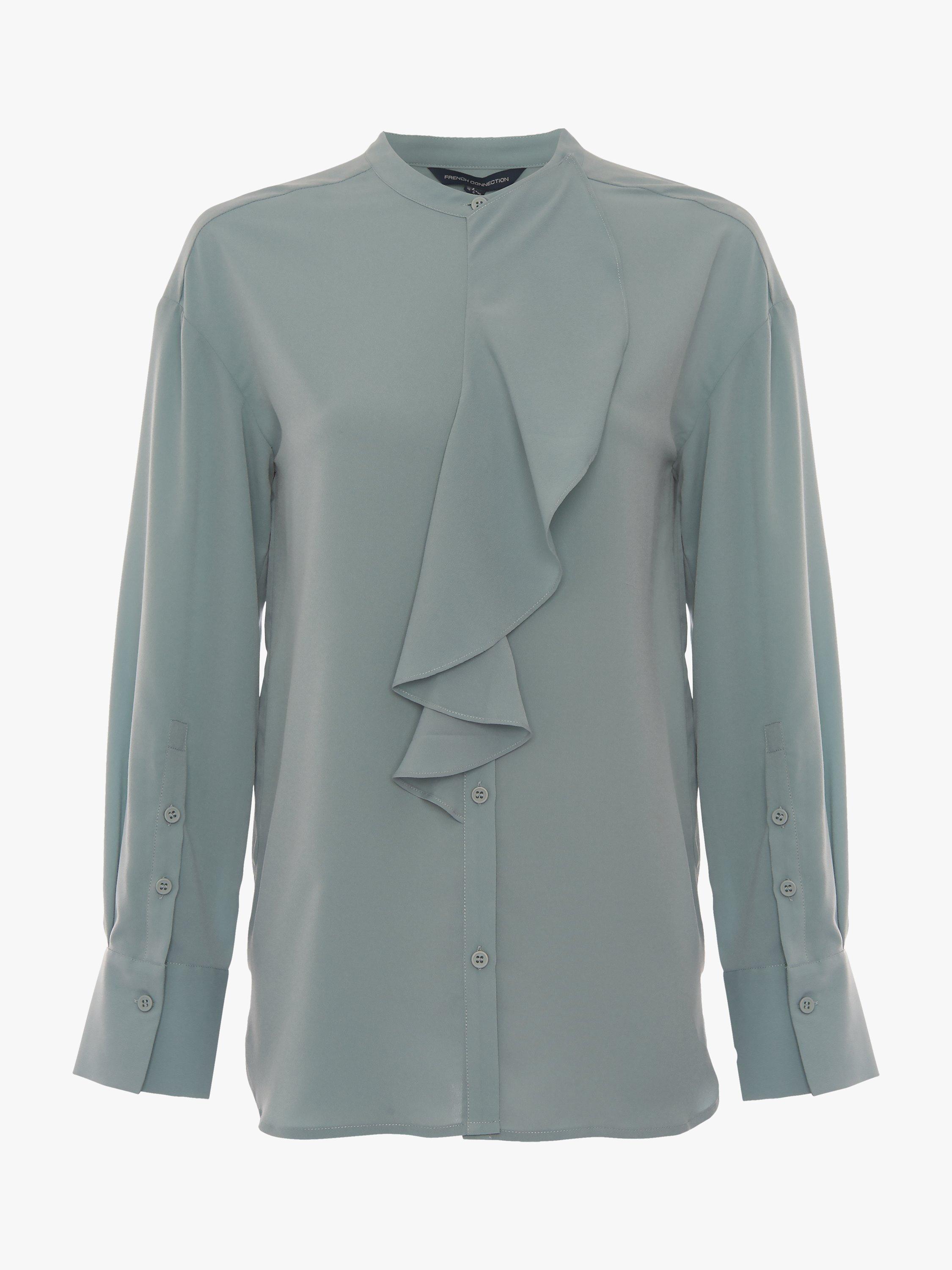 A refreshing take on workwear from Frenc Connection, the Elna blouse features a collarless neckline and feminine ruffle detail across the front. Tuck this relaxed silhouette into denim, opting for a pencil skirt and heels for office appeal.