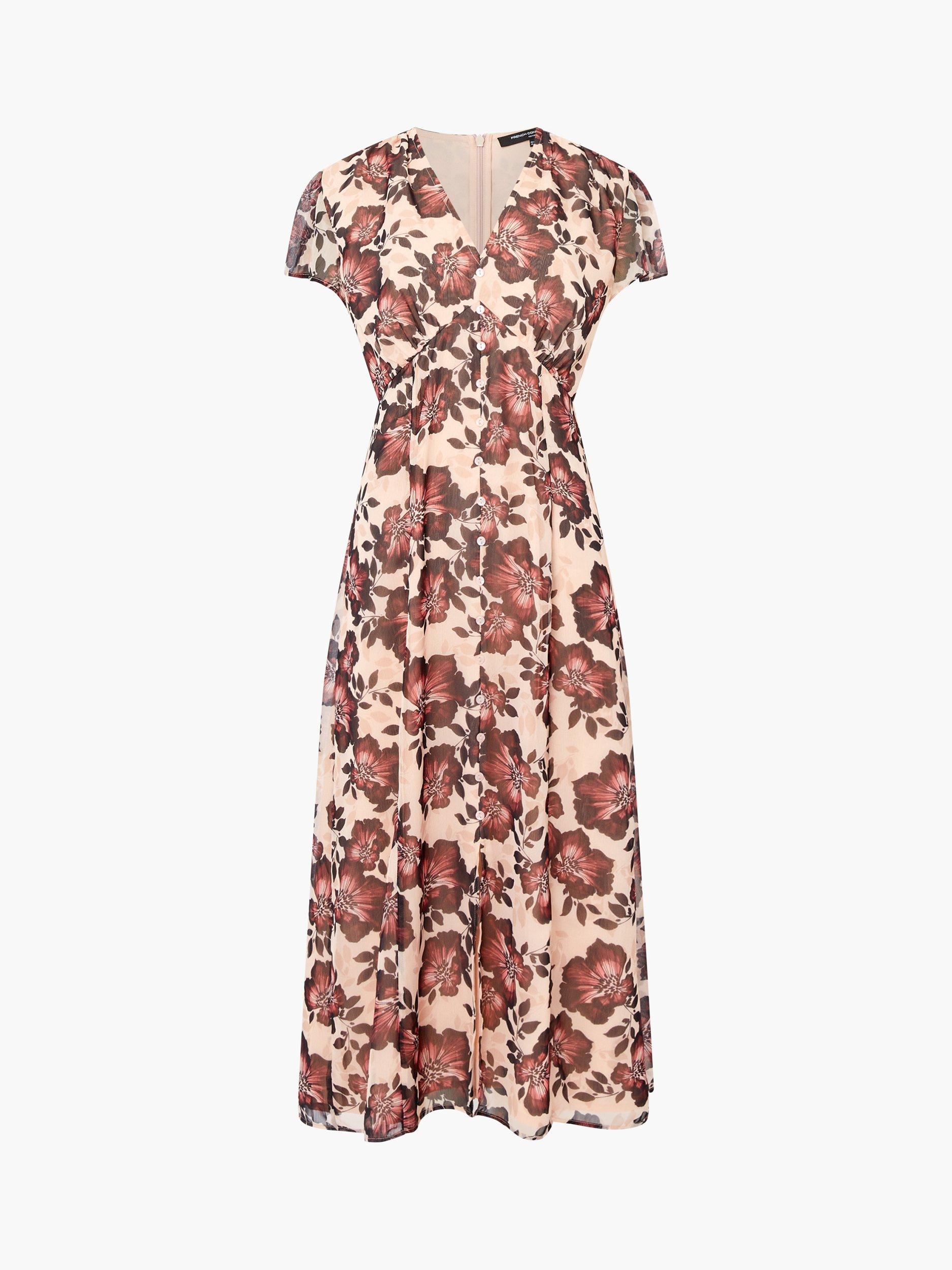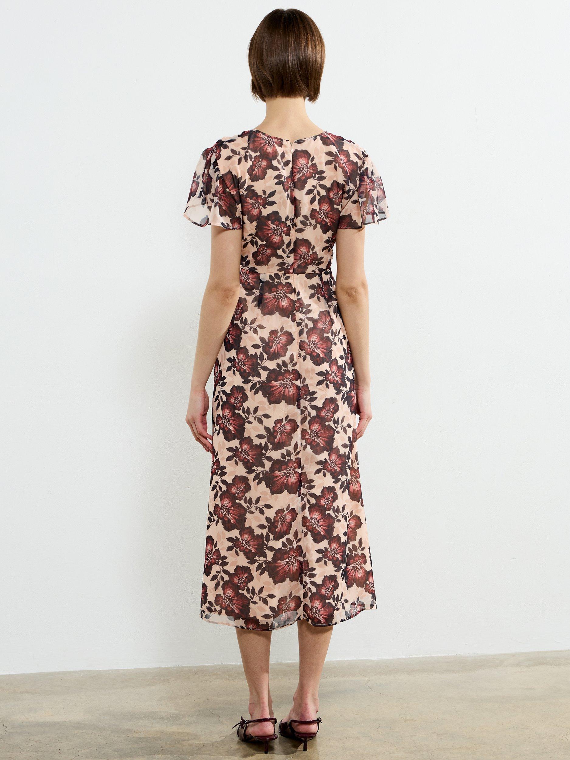 The Elyse Flutter Sleeve Tea Dress is a ground-breaking floral dress. This floral tea dress features flattering flutter sleeves, an empire waist and faux button details.