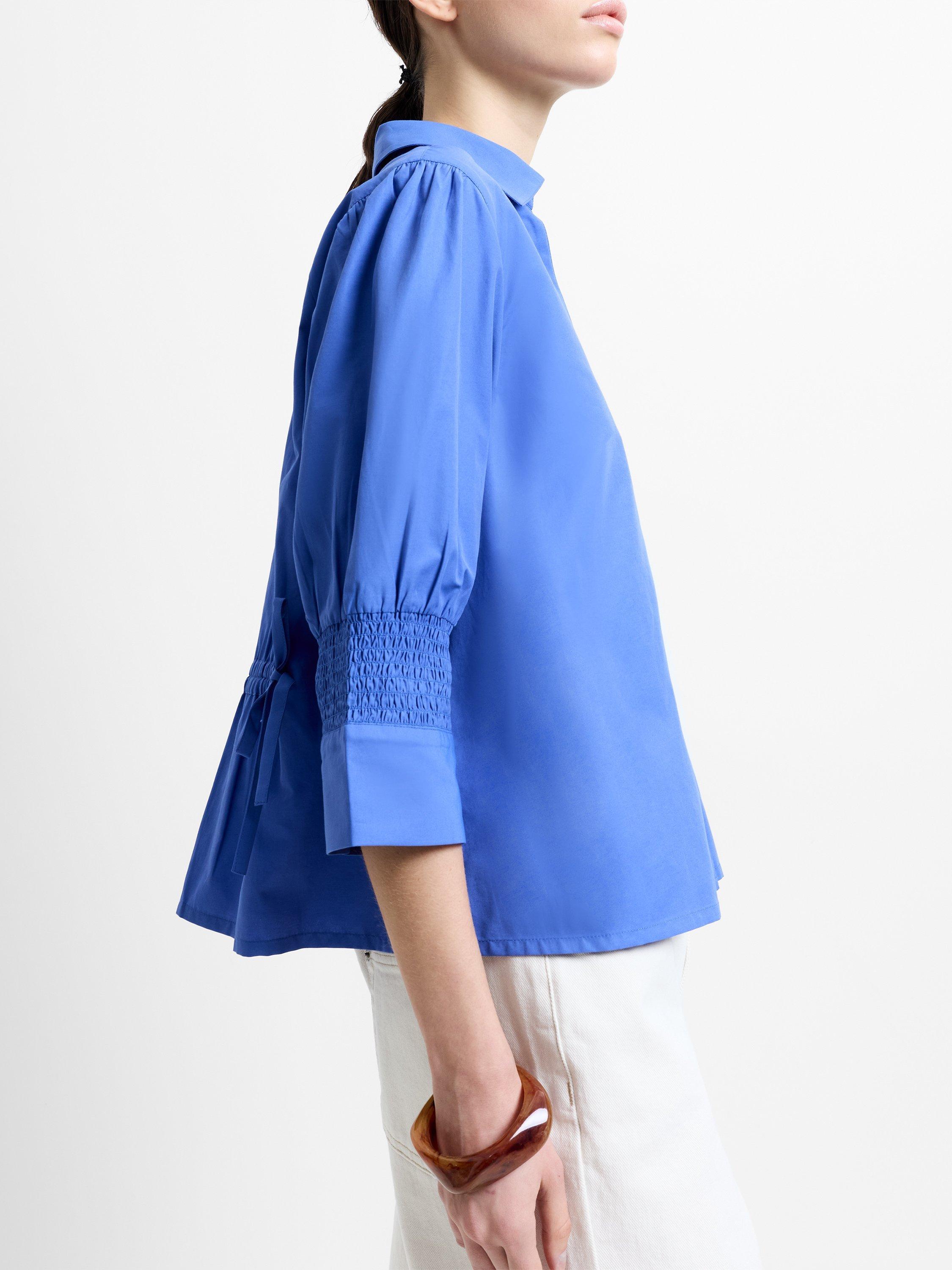 All tied up, in the best way. The Era Poplin Tie Back Top is cut from lightweight poplin with a clean button-through front, smocked cuffs and finished with adjustable self-tie back detailing.