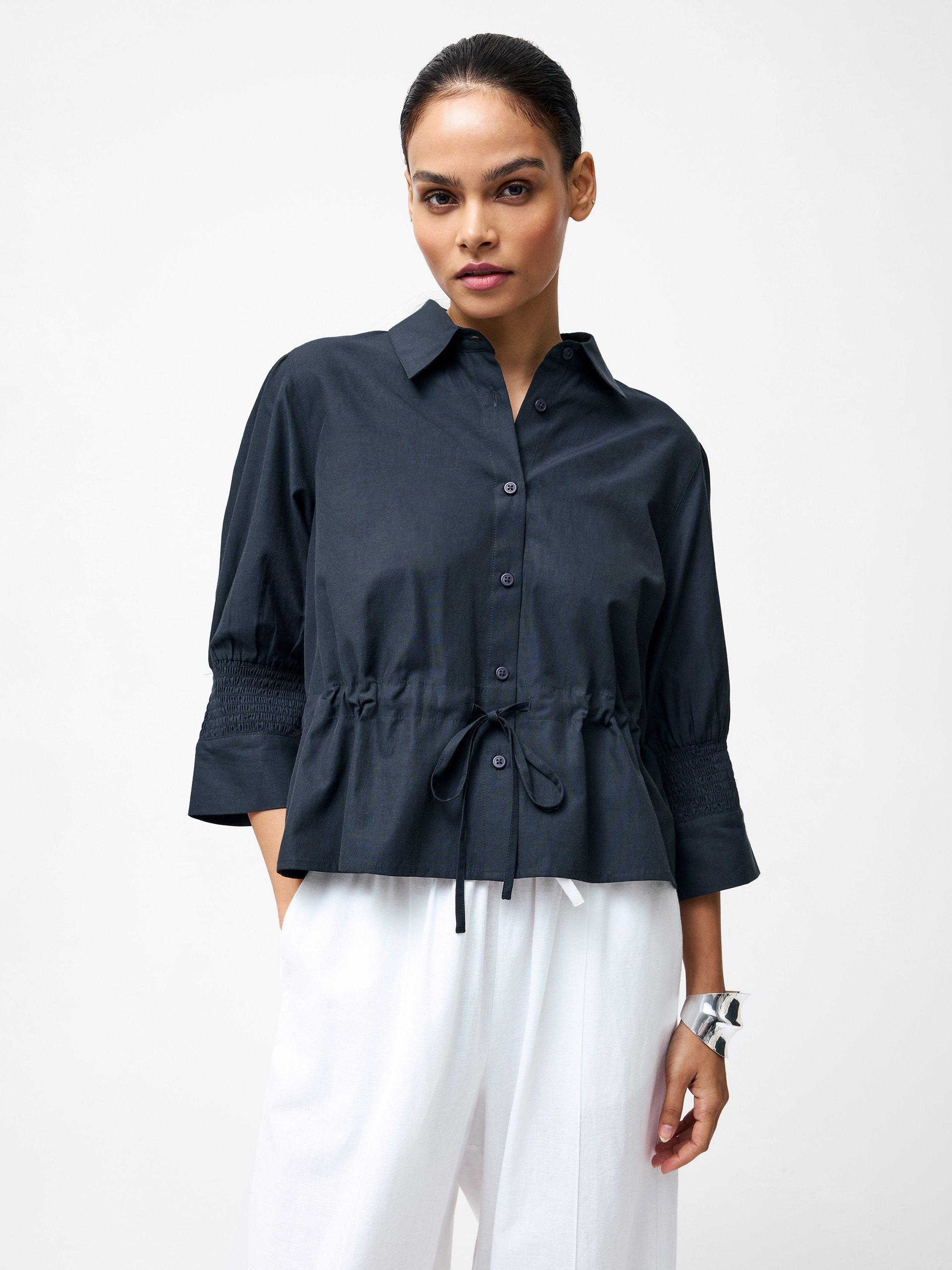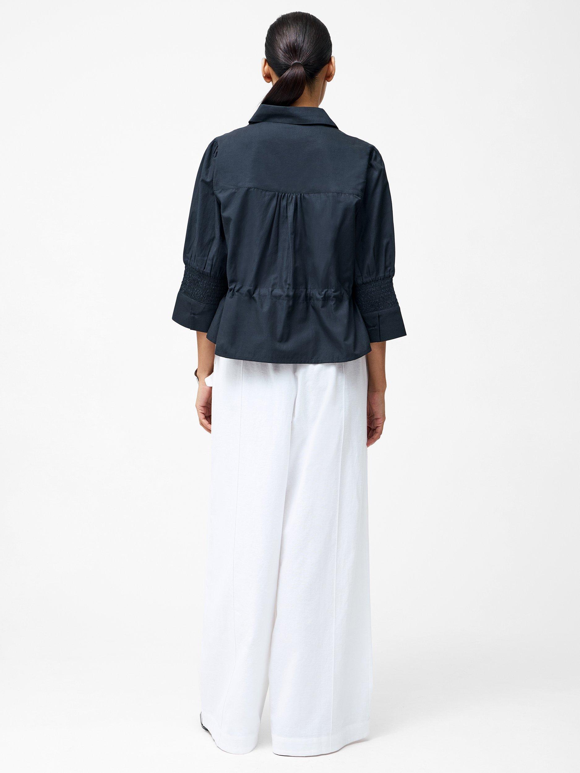 Effortlessly chic with a touch of relaxed charm, introducing the Era Poplin Top. Featuring a flattering drawstring waist, smocked sleeves and a breezy silhouette, it's the perfect blend of structure and flow.