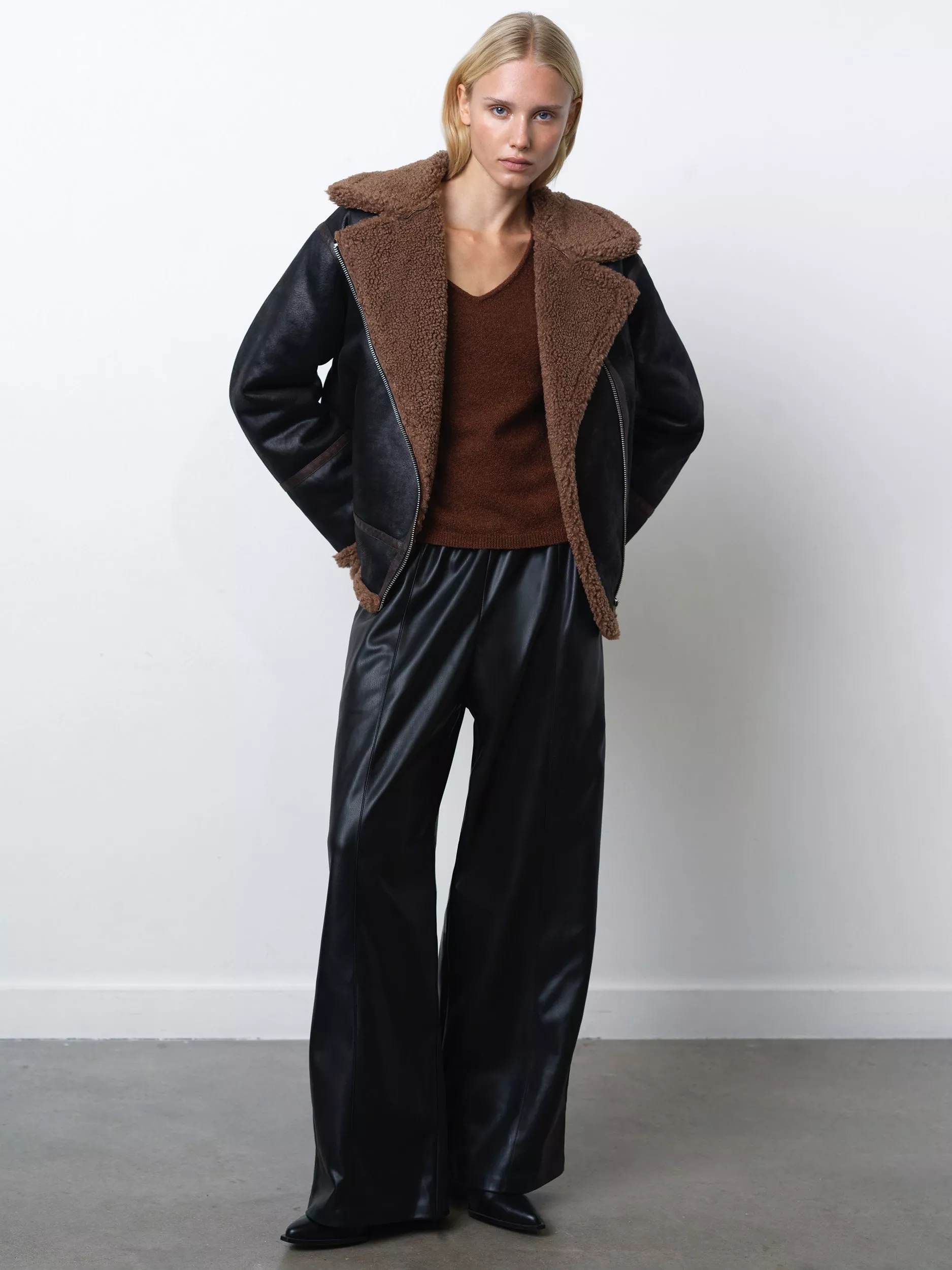 Cold days have met their match with our Suedette Zip Up Jacket. This jacket pairs rich suedette with cosy borg lining, presenting polished zip details and a split lapel collar.