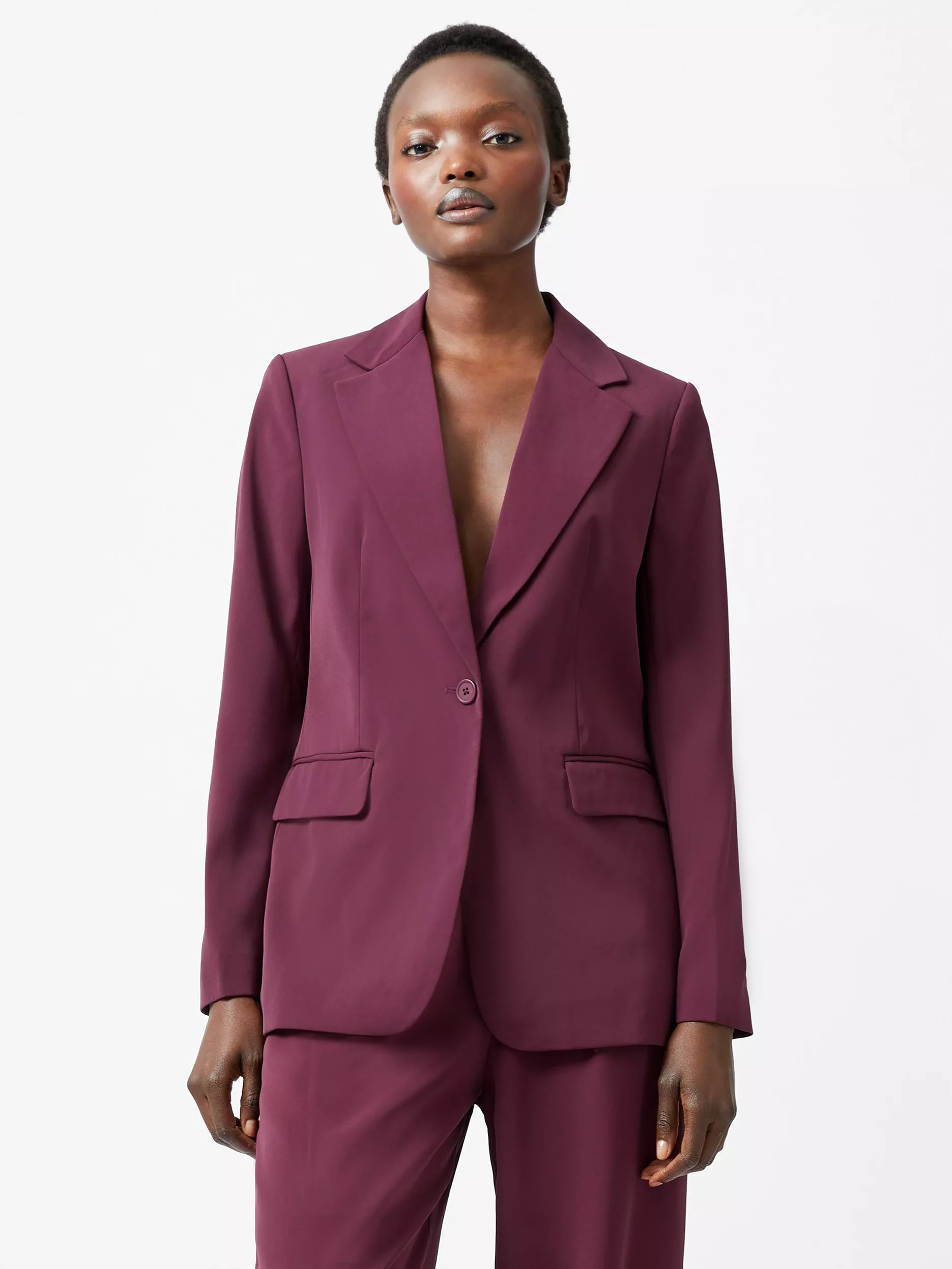 Meet your new power piece: the Harrie Suiting Jacket. This strikingsuit jacket stars in a deep hue, offering a seasonal touch to a suave single-breasted silhouette for a perfect blend of sophistication and modern style. Notched lapels and faux flap pockets lend classic touches, whilst a relaxed fit ensures comfort without compromising on elegance. Perfect for both workdays and evenings out, this jacket is a wardrobe must-have for the modern woman.
