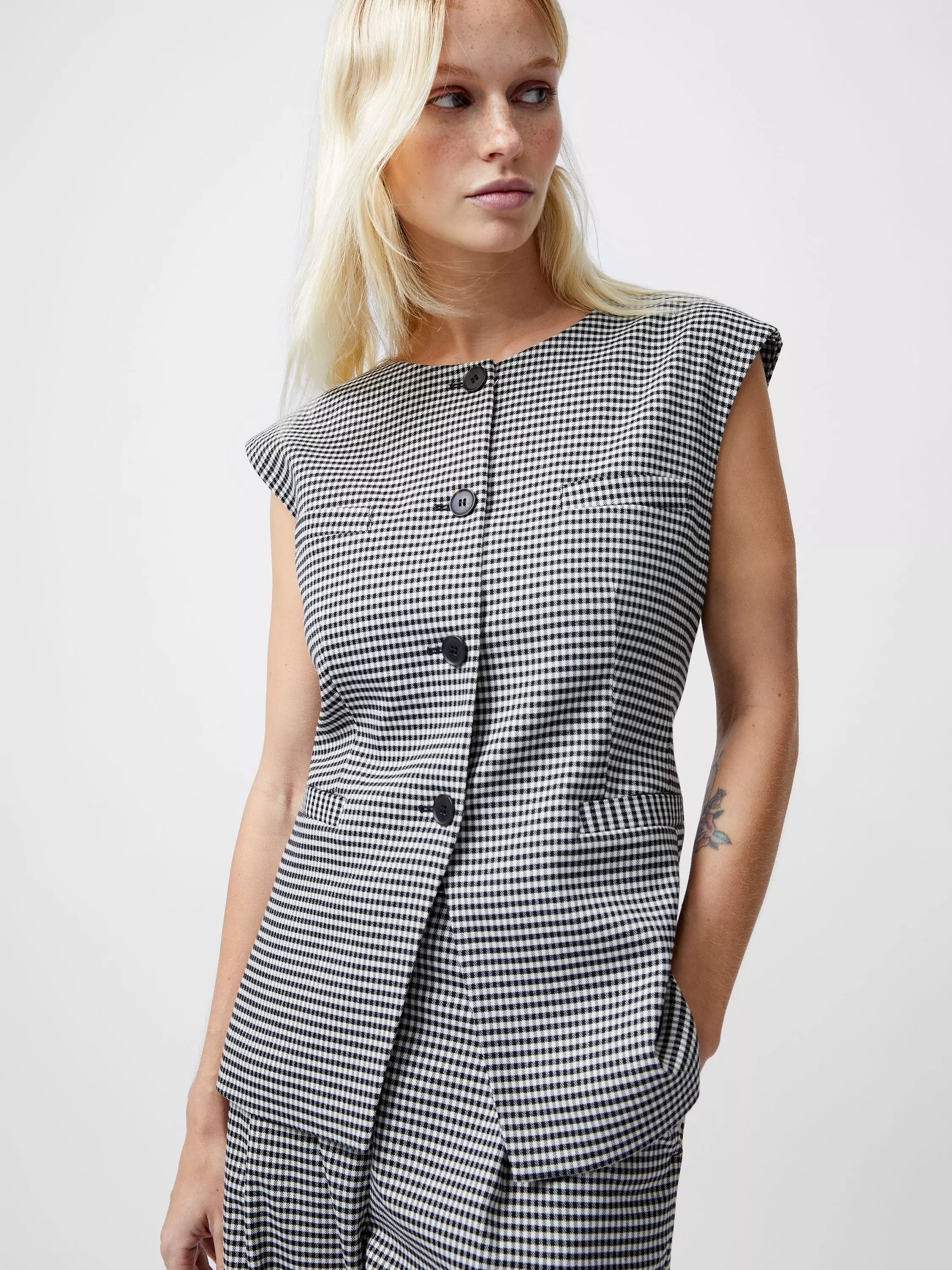 Stylish suiting is a top trend this season. Channel trendy tailoring with the Holden Houndstooth Waistcoat. This waistcoat offers timeless chic styling with its sleeveless single-breasted fastening in a classic monochrome houndstooth complete with 4 faux pocket details.