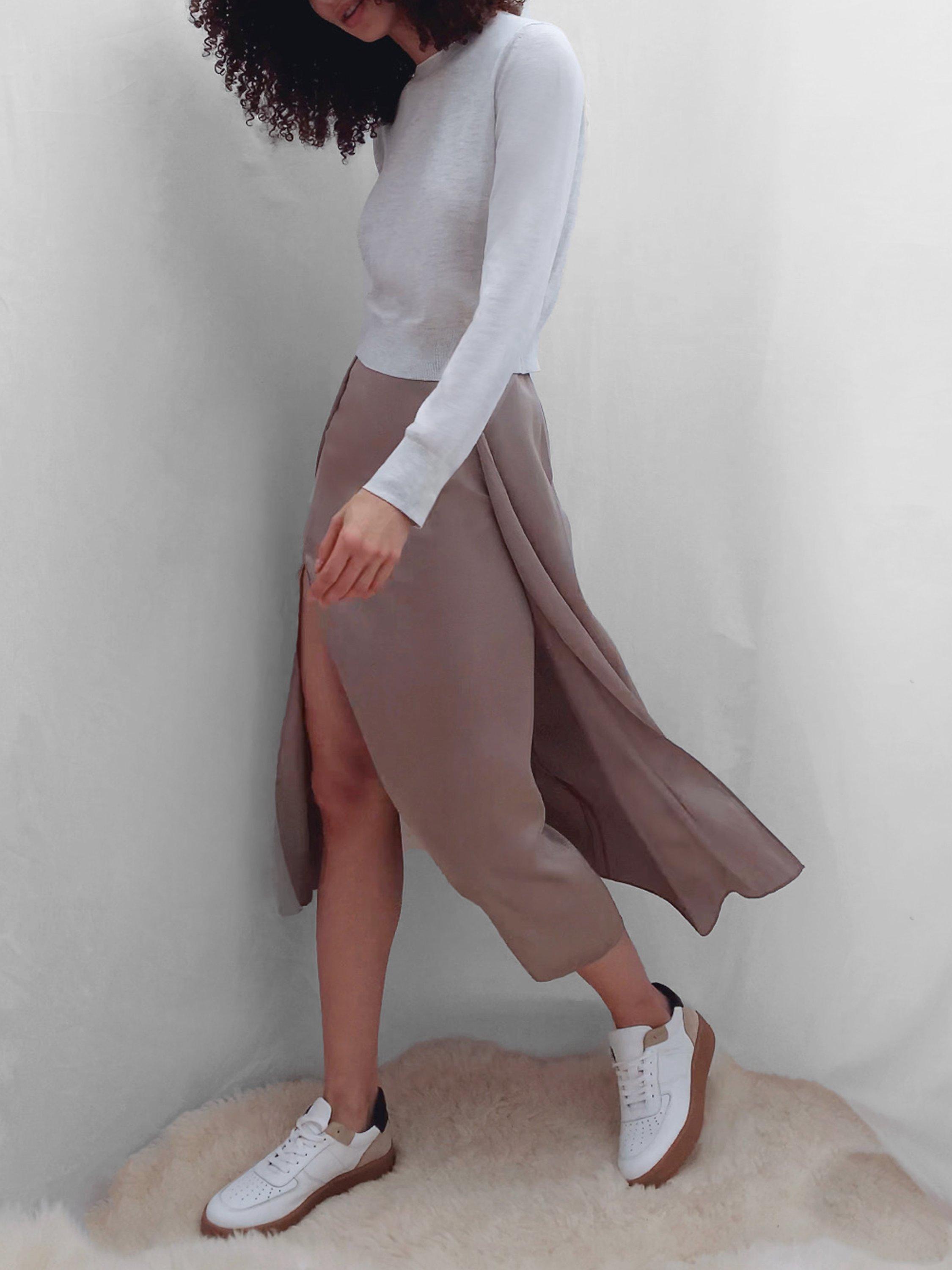 Versatile in design with two side slits for an alluring appeal, it is the ideal iteration to slip into when a little alfresco dining is in order.