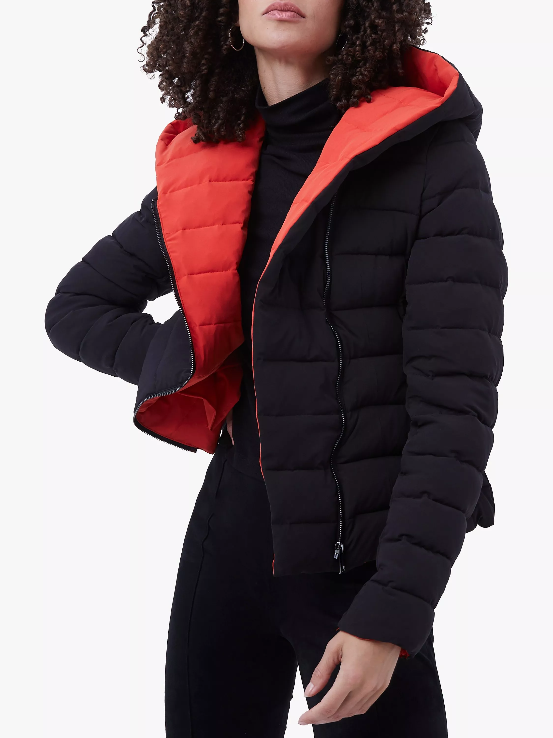 French ConnectionIola Quilted Hooded Jacket, Black/Red