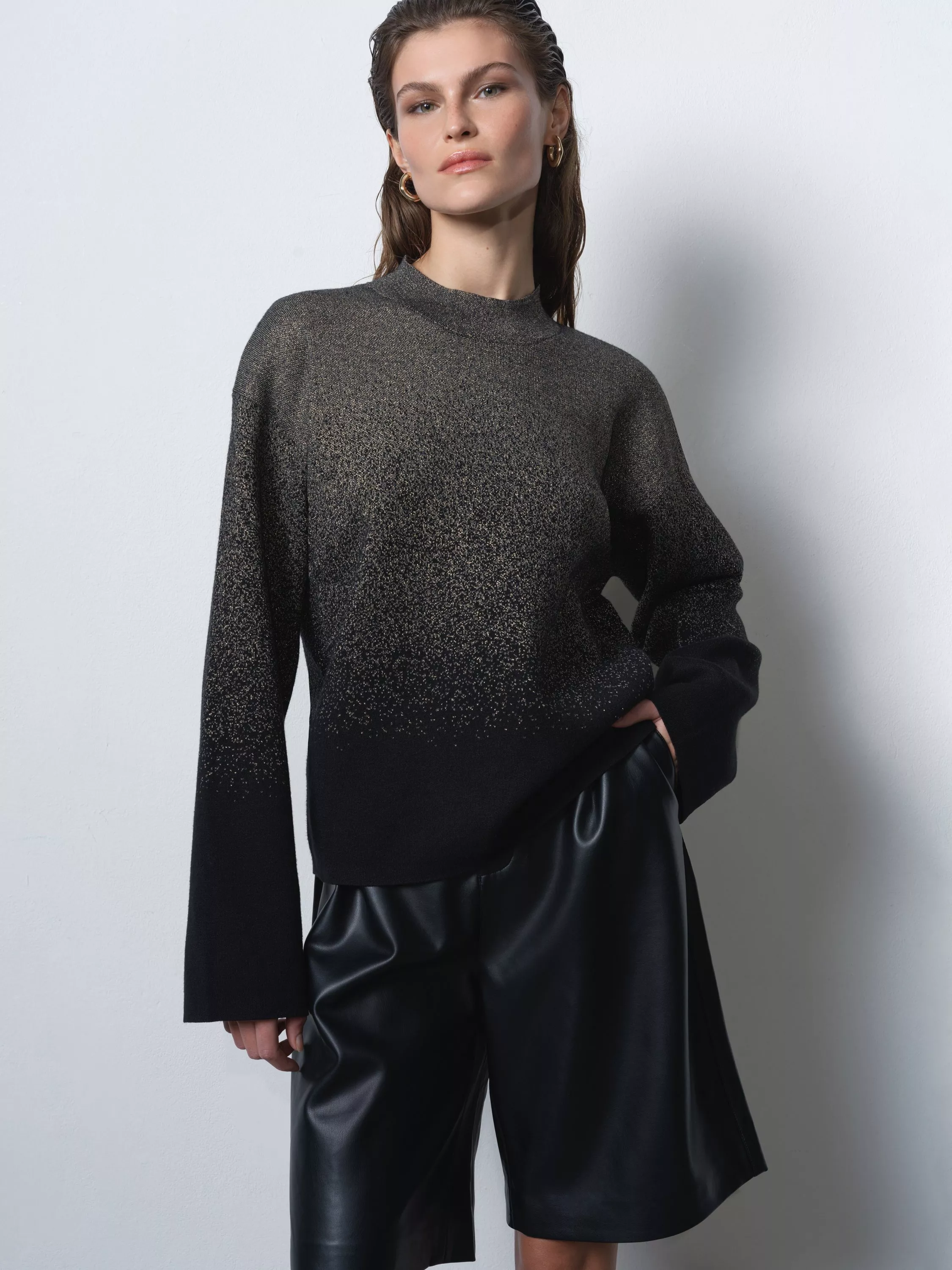 All that glitters... The Kady Glitter Ombre Jumper pairs a classic long sleeved silhouette with shimmering metallic threadwork, for an elegant black and gold ombre appearance.