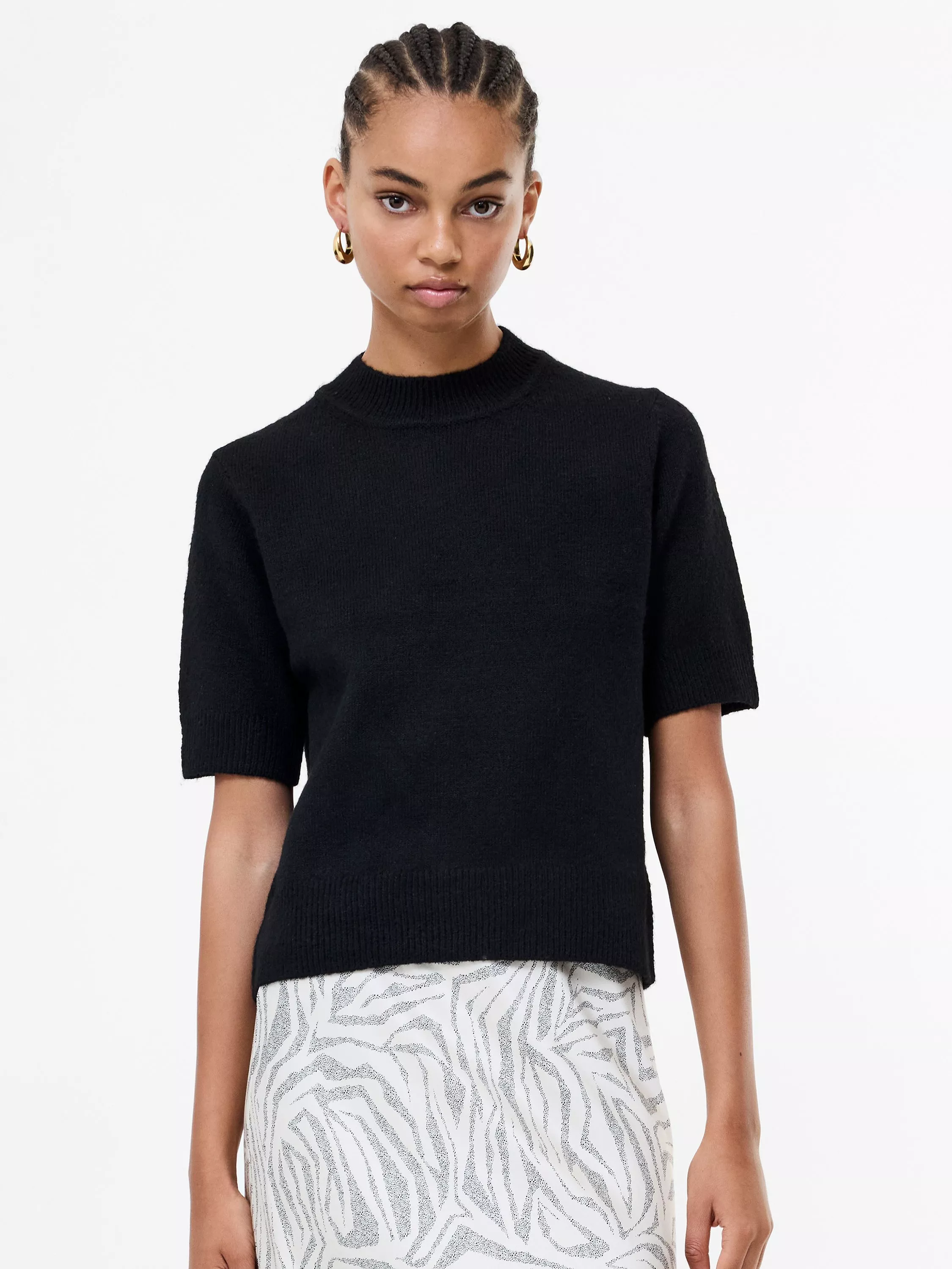 Your new laidback luxe go-to, the Kezia Short Sleeve Mock Neck Jumper features a high neckline and relaxed short sleeves for a fresh and modern feel.