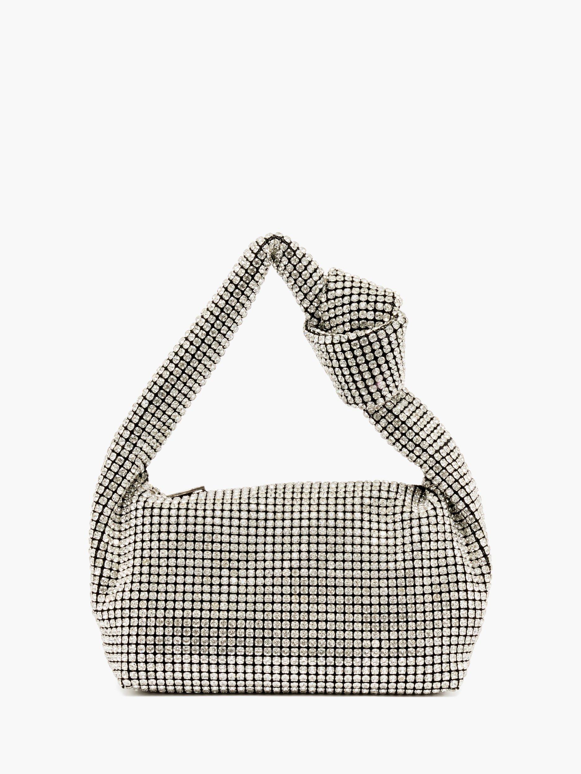 A modern icon with a radiant edge. Designed with all-over diamante embellishment and a sculptural knotted handle, the Knot Diamante Bag brings refined glamour to any occasion.
