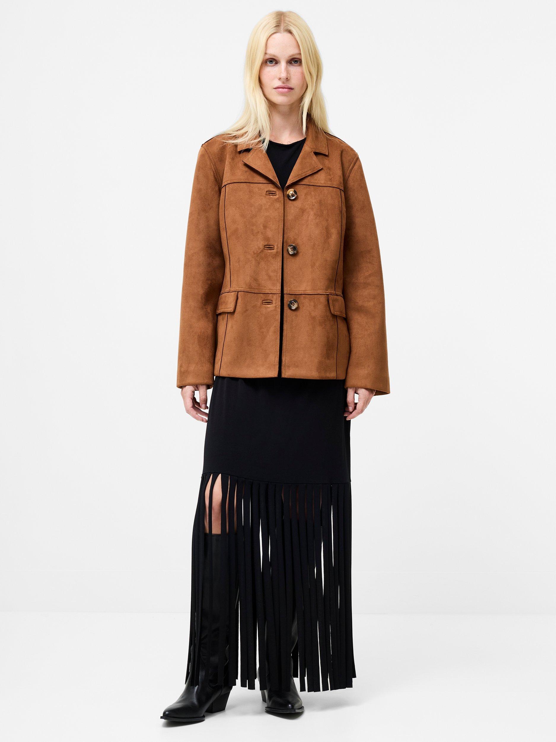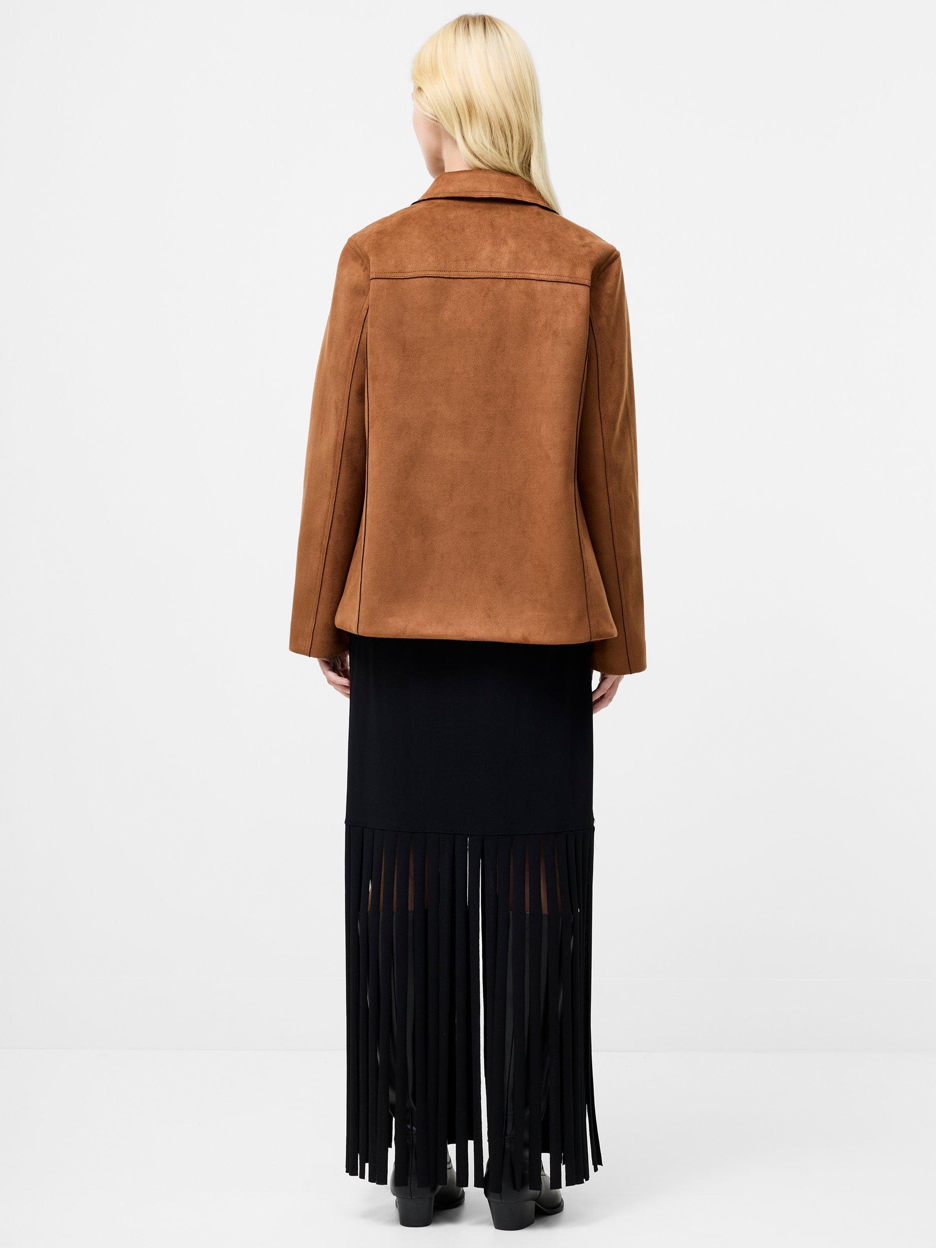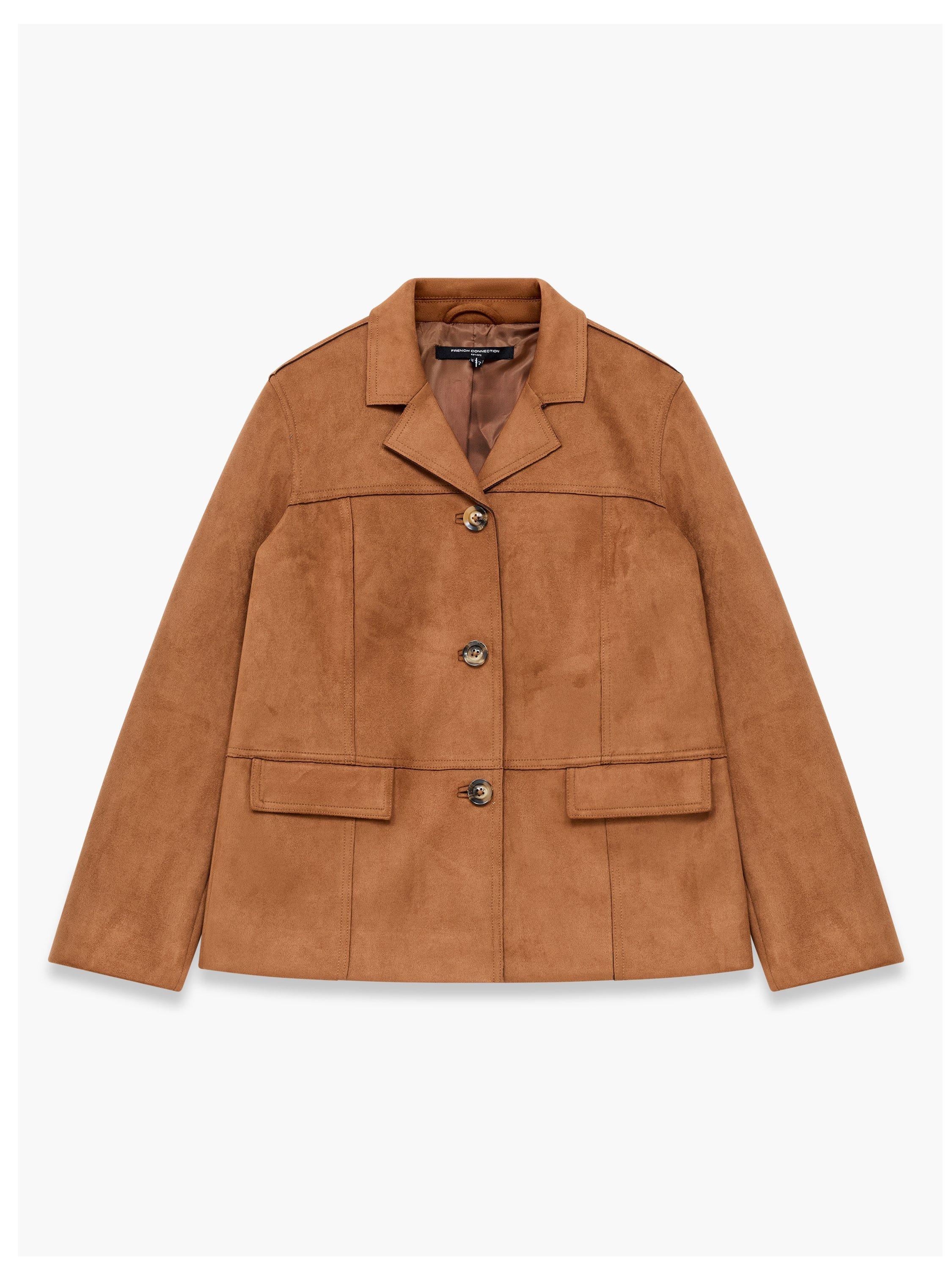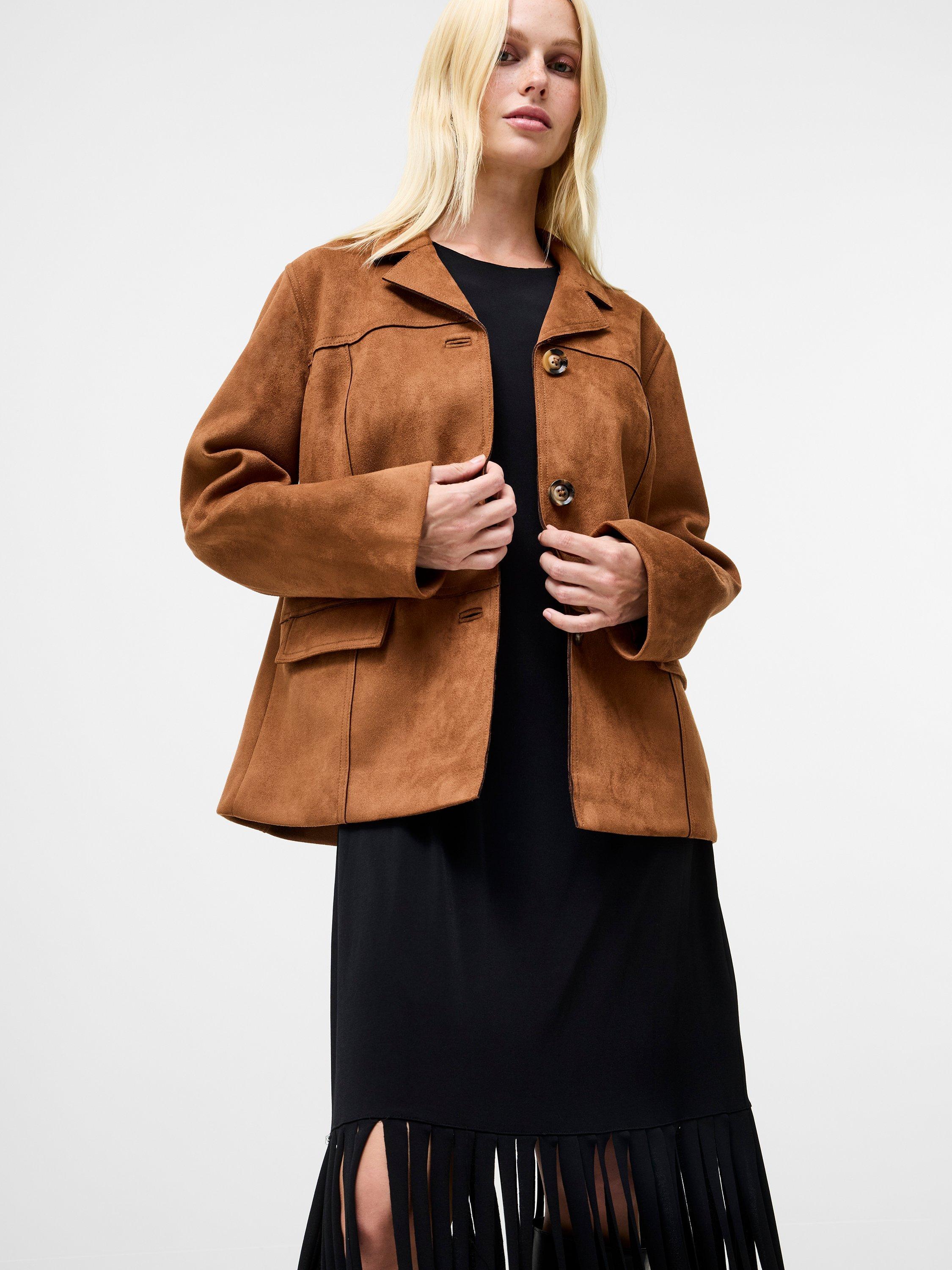 The Laney Faux Suede Jacket is a retro dream come true. This faux suede style brings its smooth, long-sleeved silhouette to life with a split lapel collar and statement buttons, accompanied by a pair of faux flap pockets.