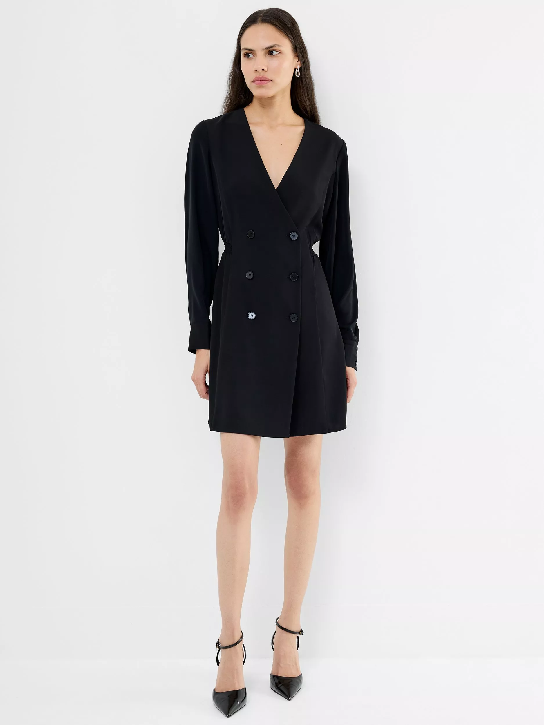 The Levent Crepe Double Breasted Mini Dress is sharp, sleek and ready for anything. This mini dress features a flattering double-breasted front and soft tailoring through the waist.
