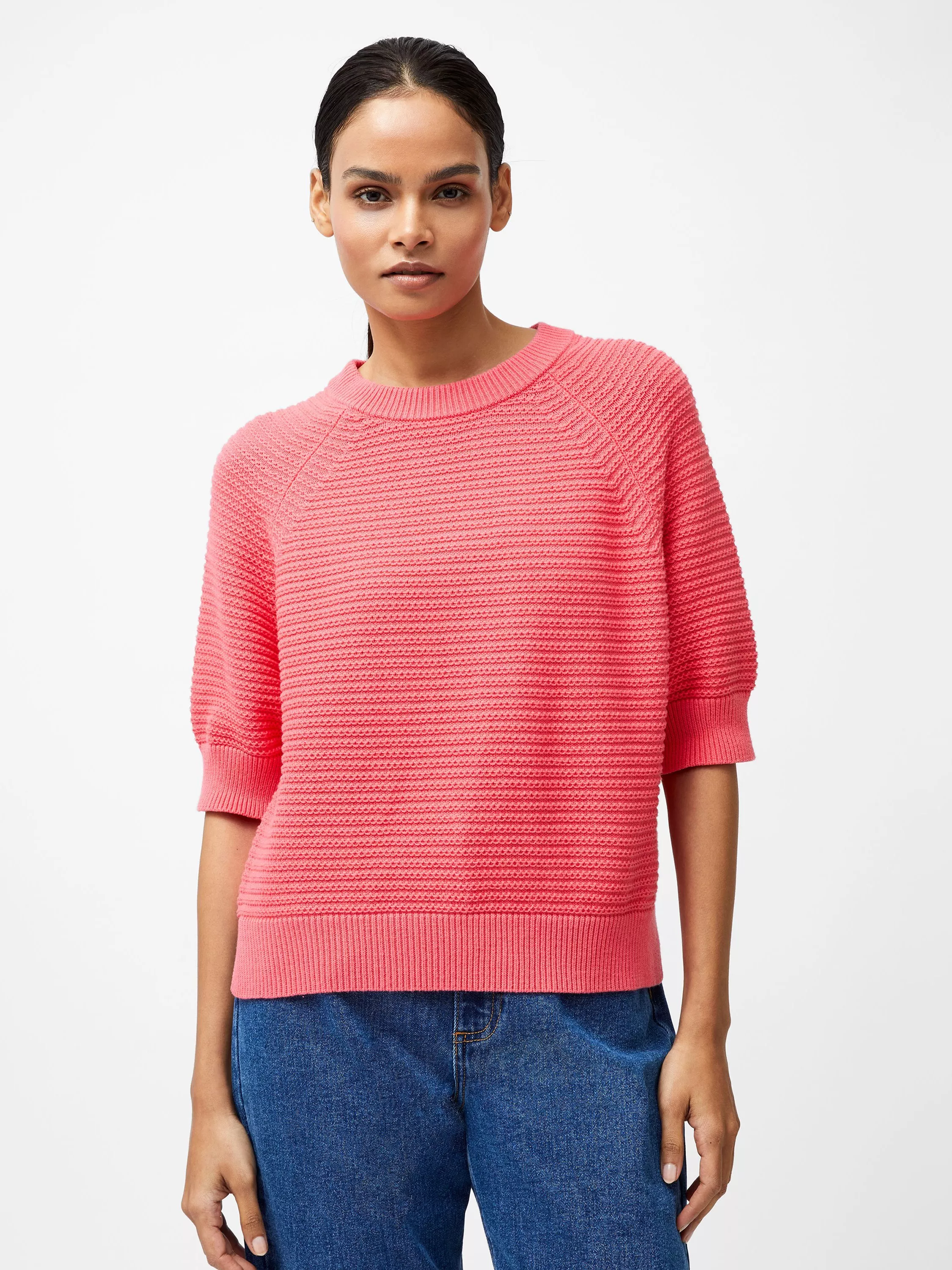 Say hello to your knit to know this season. French Connection's Lily High Neck Short Sleeve Jumper meets comfort with charm in a soft textured sweet peach shade knit. Elbow length sleeves makes this style versatile for transitional seasons adding the right mix of laidback and layering potential.