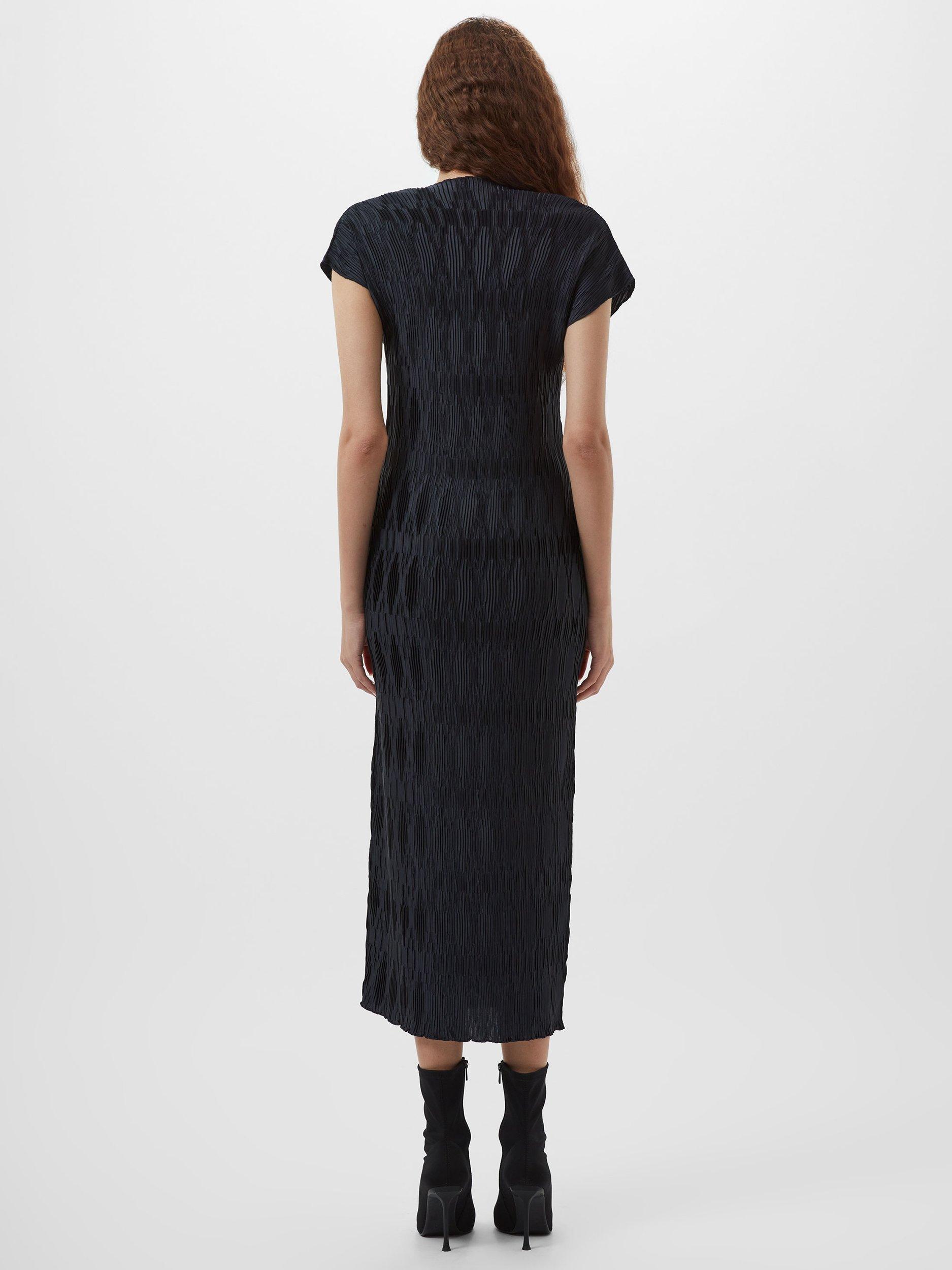 The Moira Pleated Dress is poised with modern minimalism. This dress adds texture with a contemporary touch to your wardrobe with a pleated body framed by modish cap sleeves and boat neckline. This dress can be worn from day to night with the right accessories.