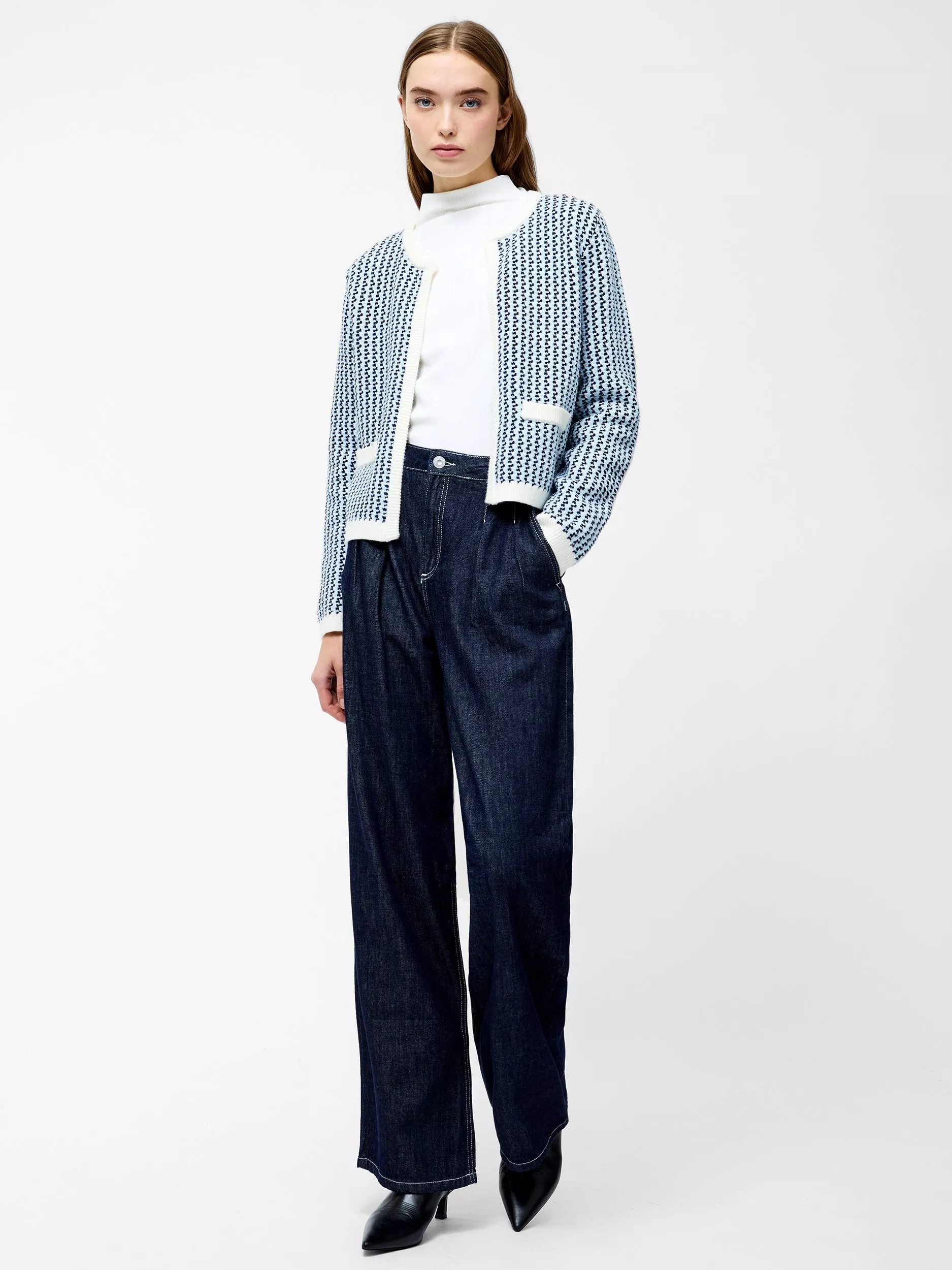 Complete your everyday ensembles with an effortlessly chic layer. French Connection's Noar Cardigan is a piece of classic knitwear that will never go out of style, with a ditsy pattern and colours complimented by co-ordinating faux pockets and ribbed hem details. The box fit of this cardigan adds a modish flair to its overall appearance.