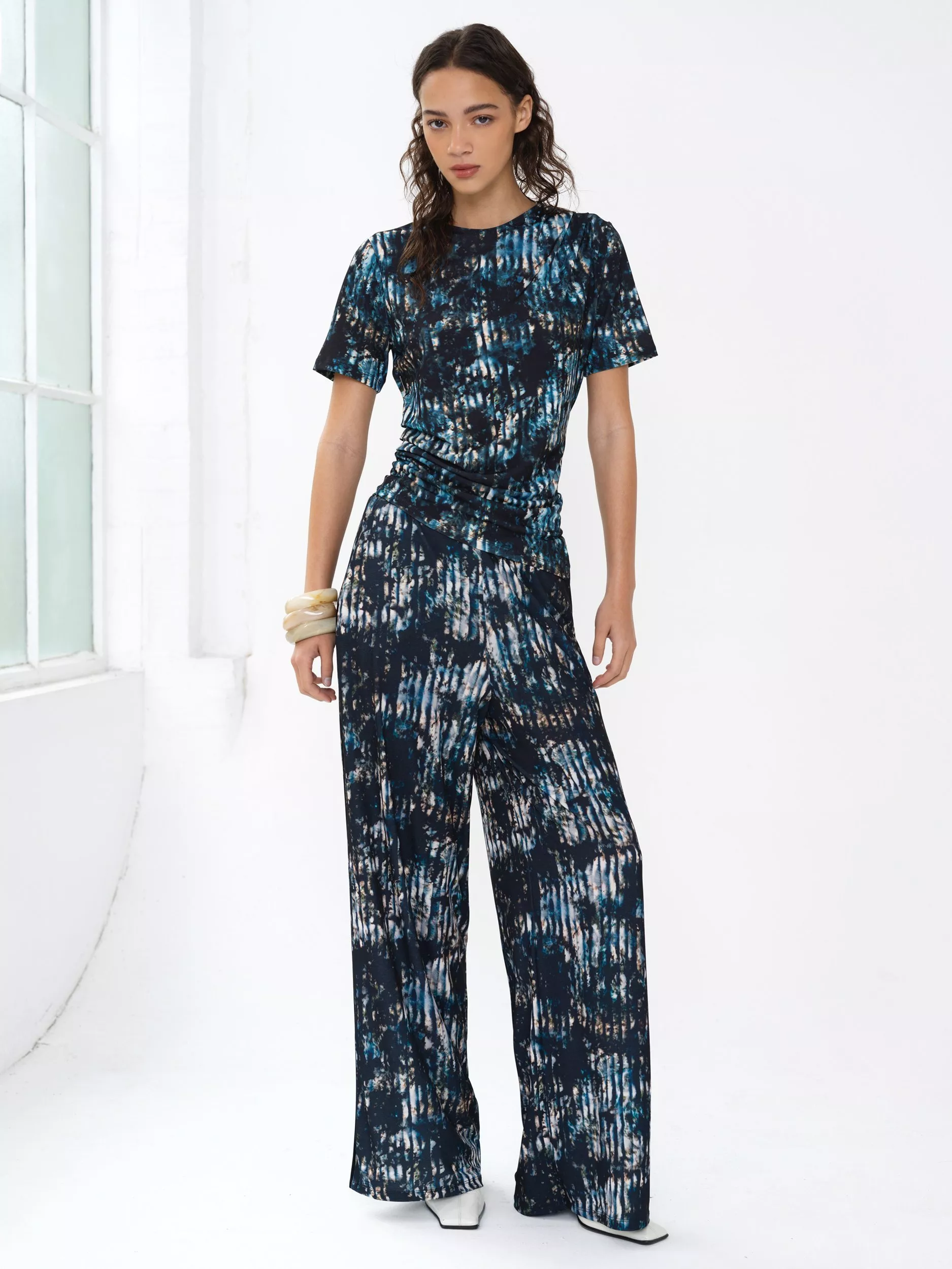 Print, please. French Connection's sleek Orla Zina Draped Top features short sleeves and a flattering draped waist, in a colourful, abstract print set to catch attention (and cue compliments). Complete the co-ord with the matching Orla Zina Wide Leg Trousers.
