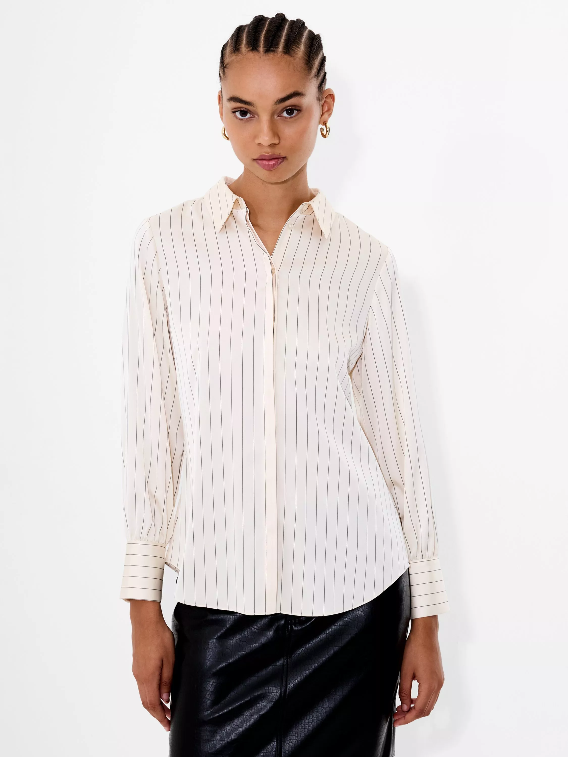 With sheen and stripes, the Satin Pinstripe Blouse makes a strong statement. This long-sleeved blouse features fine pinstripes, a concealed button placket and a structured collar - cut from fluid satin for a polished yet relaxed silhouette.