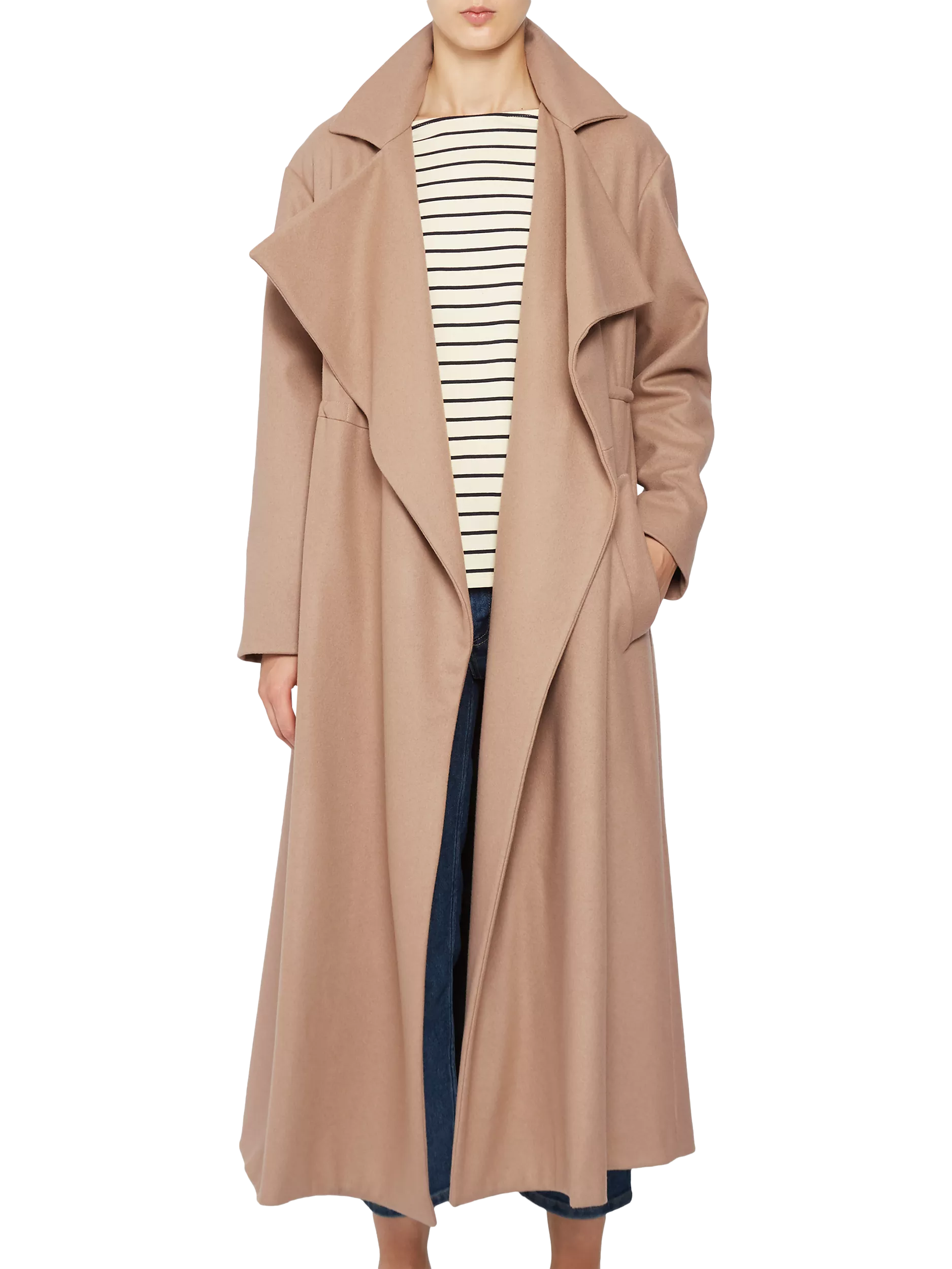 Crafted from a wool and cashmere blend, this soft to touch coat is perfect for staying on-trend during the cooler climes. It features long sleeves with button tabs, a notch collar and is fully lined for extra comfort and warmth. Design details also include a cinched in waist with an internal adjustable fastening, side pockets, a wind flap and an opening at the back for extra movement.