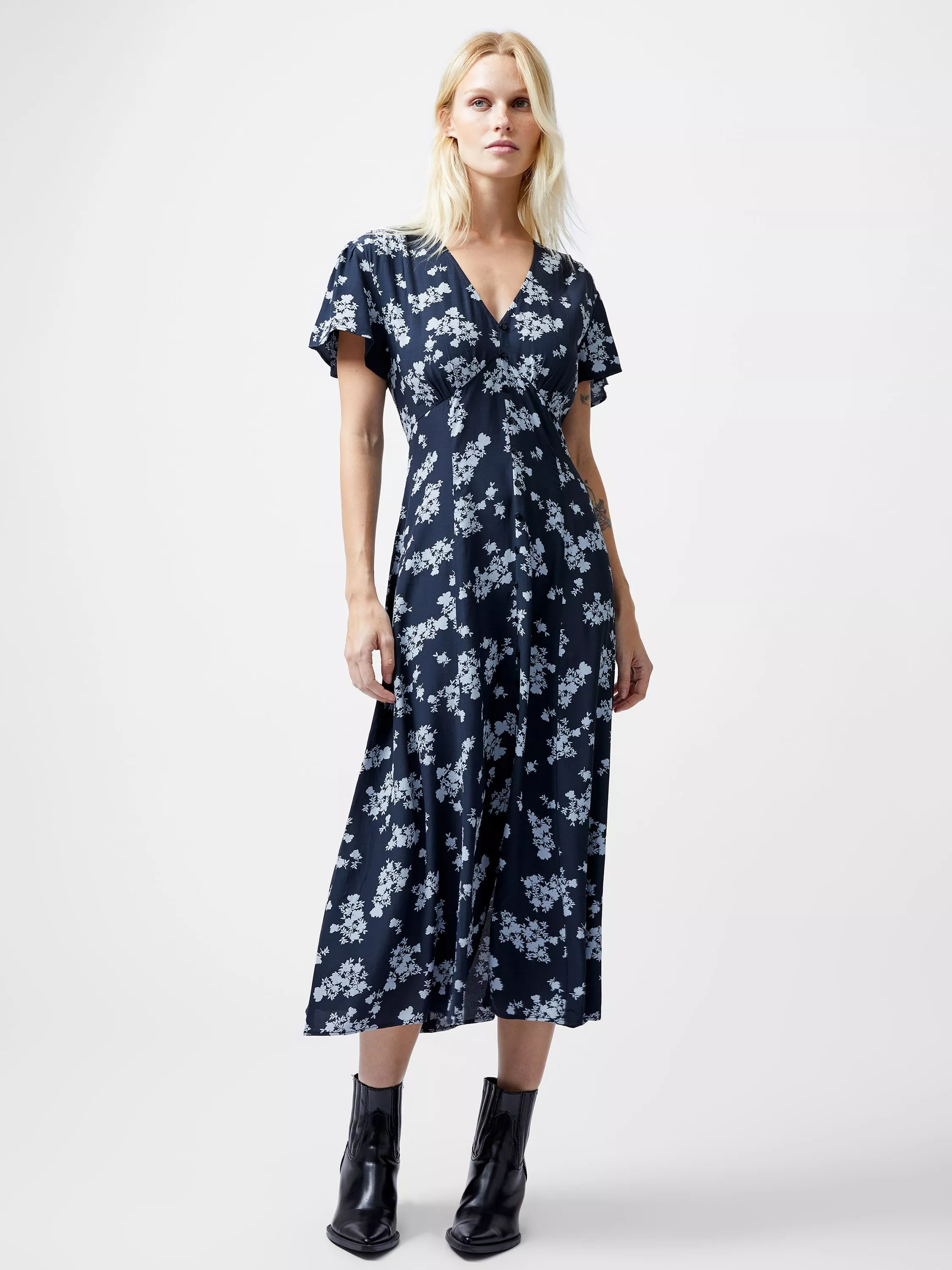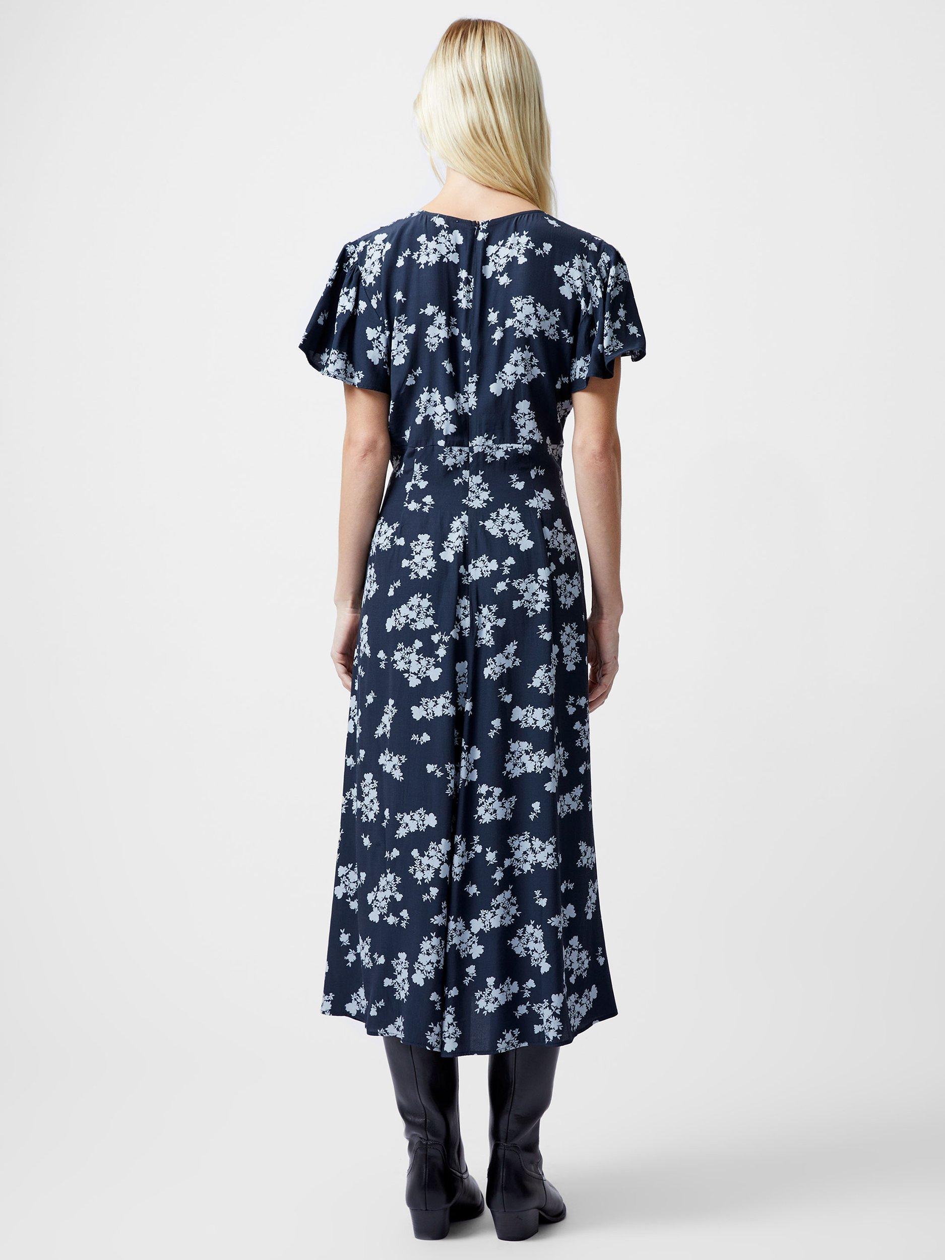 Float into the season with this beautiful floral dress. The Raquel Flutter Sleeve V Neckline Dress accentuates its flowy silhouette with flutter sleeves and an empire waist whilst a v neckline and faux button details further flatter its feminine floral print.