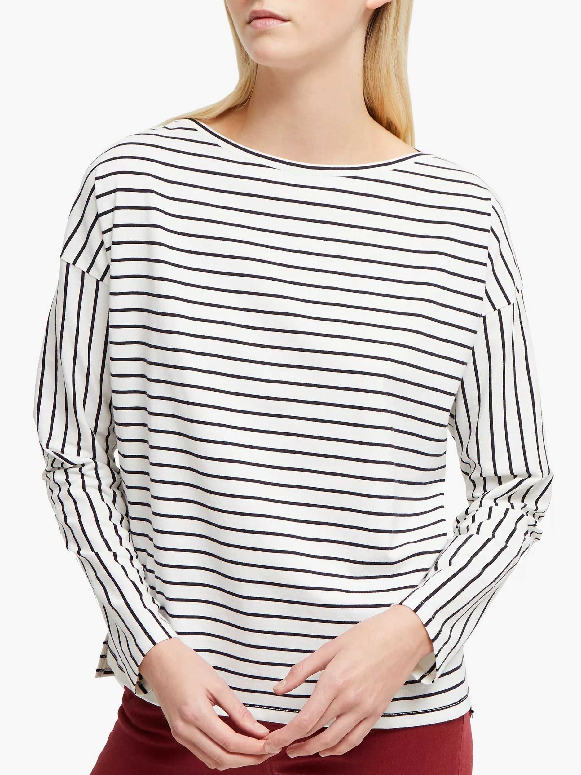 Ever-present in style with a classic and versatile shape, the Rosana Tim Tim Long Sleeve Tee boasts an elegant boat neck, fluid stripes and an easy loose fit. Wear yours with white denim or relaxed shorts to balance the show of skin between seasons.