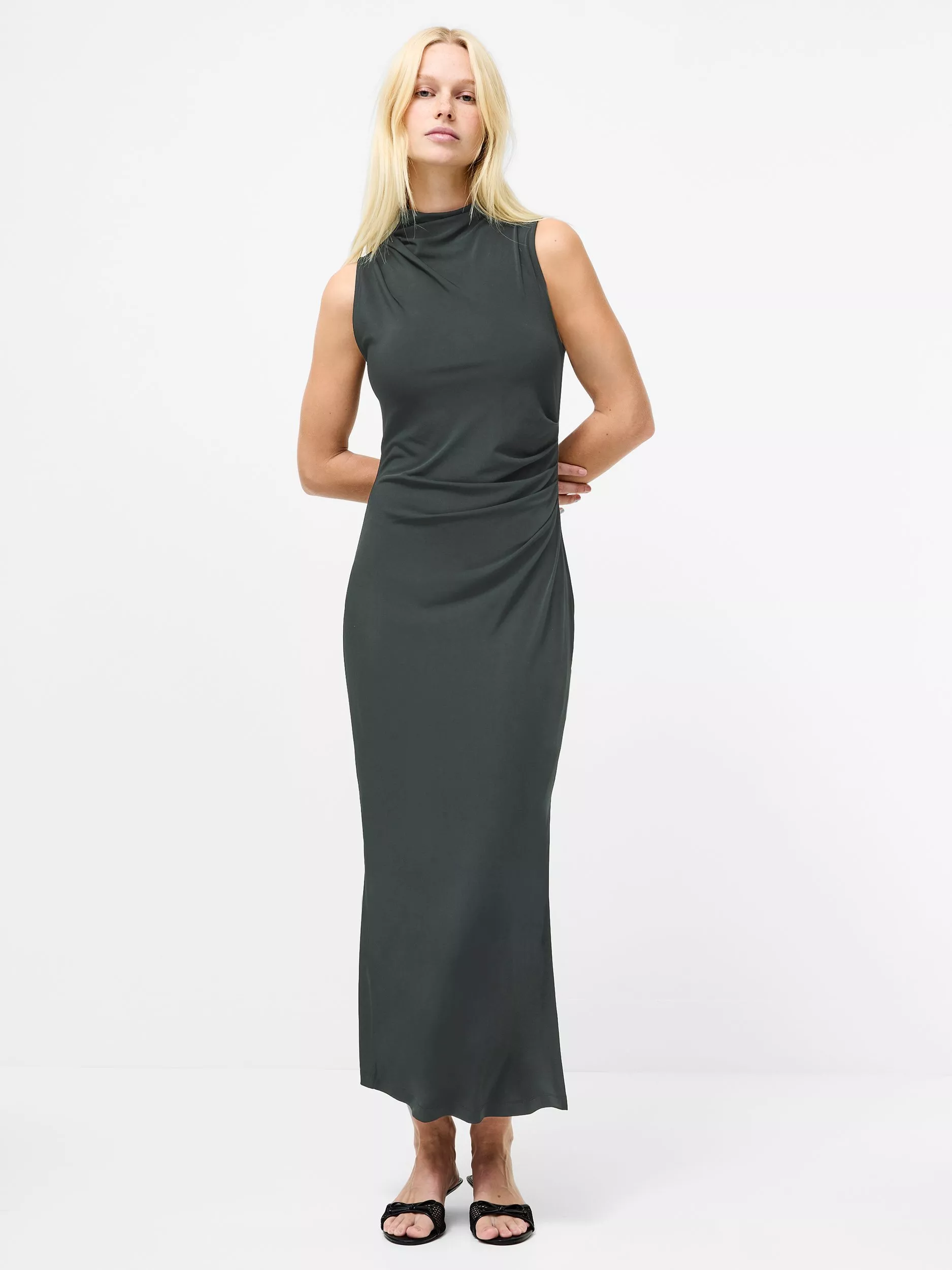 The must-have midi of the moment. The Samira Jersey High Neck Drape Midi Dress will stand the test of time, featuring asymmetric draping across its bodice and a subtle side slit for a modern, sculptured silhouette.