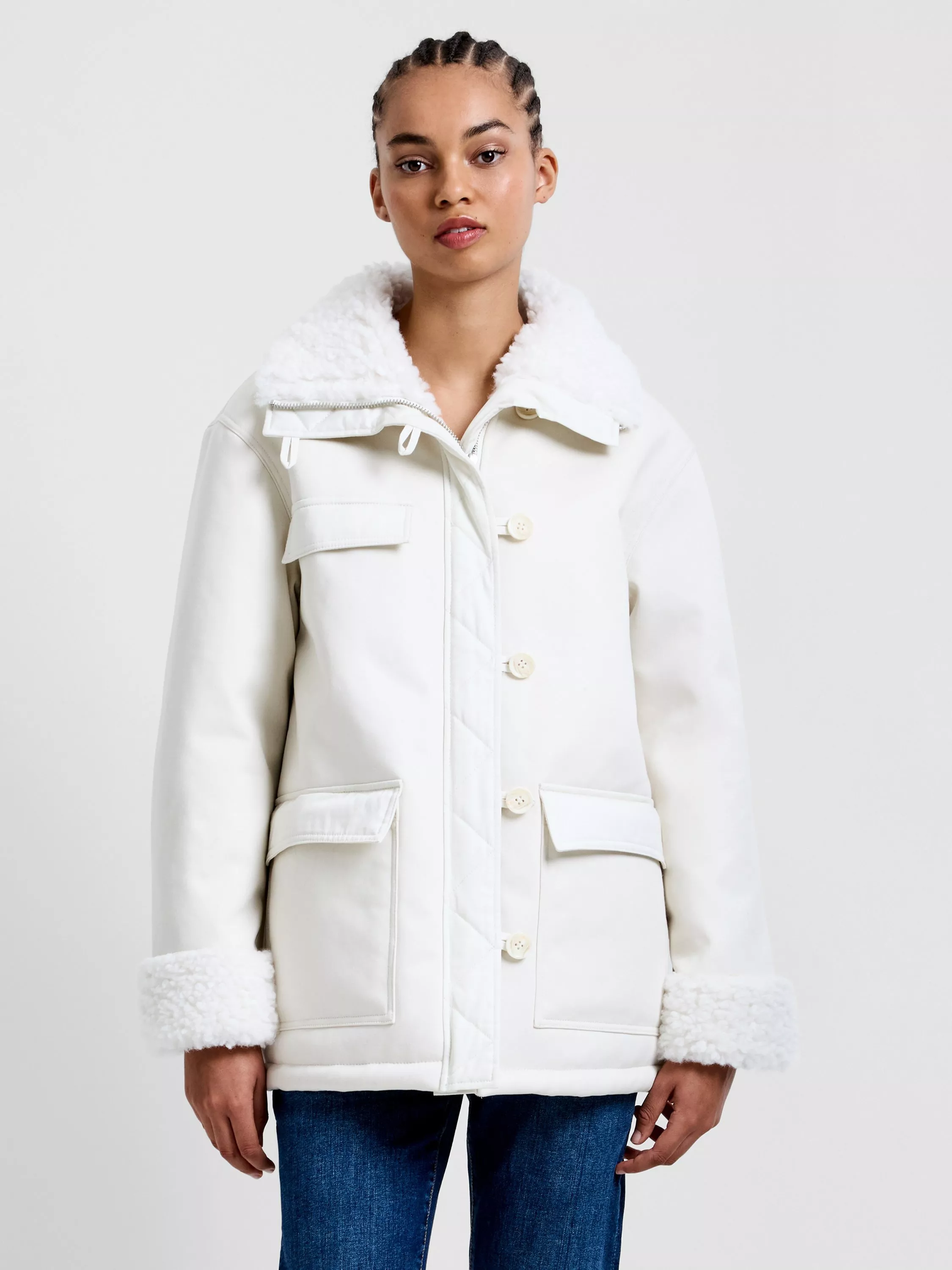 Soft feel, strong look. The Solise Cotton Faux Fur Coat features a faux fur collar, cuffs and full lining, a faux breast pocket, 2 functional front flap pockets and a clean button and zip down design.