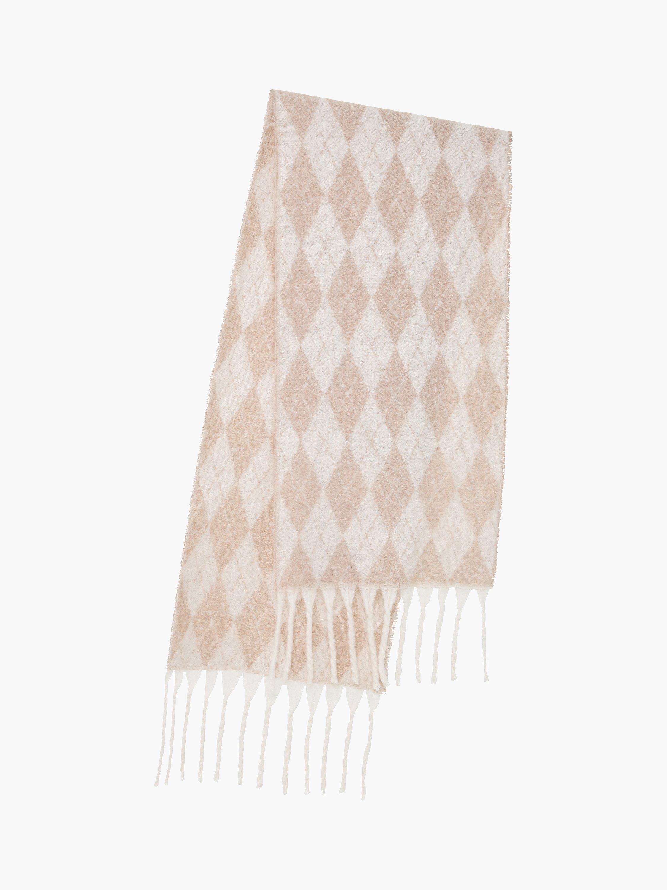 Accenting your ensemble, this fringe detailed scarf from French Connection is offered in diamond checks for timeless appeal.
