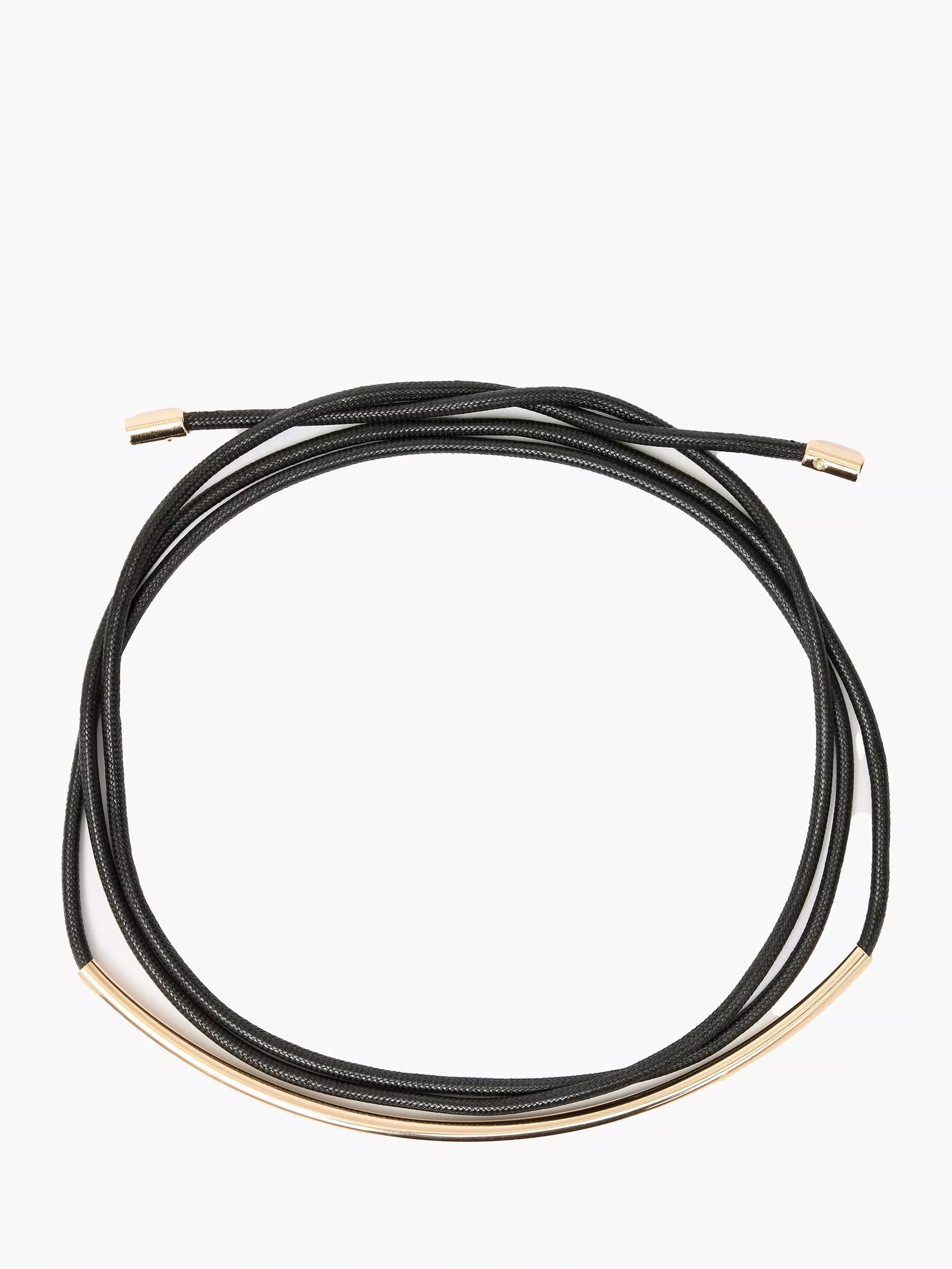 Sleek, sculptural and subtly striking. This French Connection's belt features a tubular tie body, elevated by a curved gold-tone bar and matching toggles.