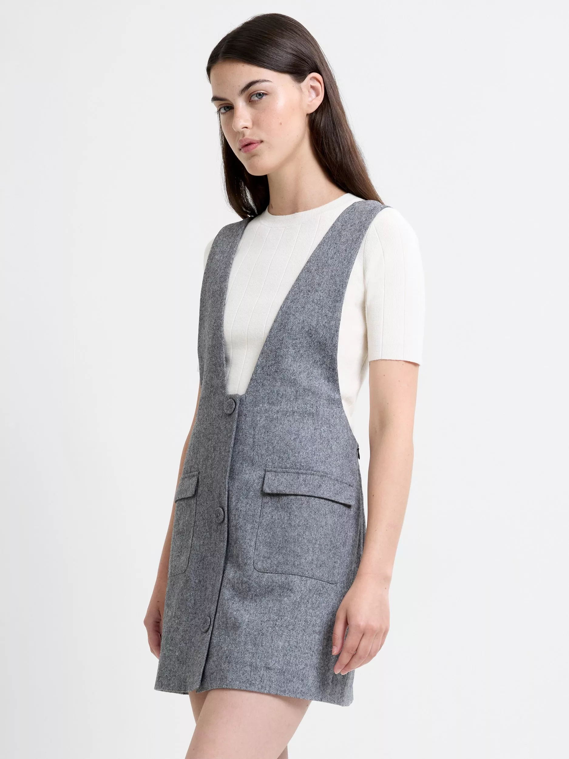 A classic silhouette, with a modern twist. This sleeveless wool mix mini dress from French Connection features a V-neckline and an easily styled plain colouring.