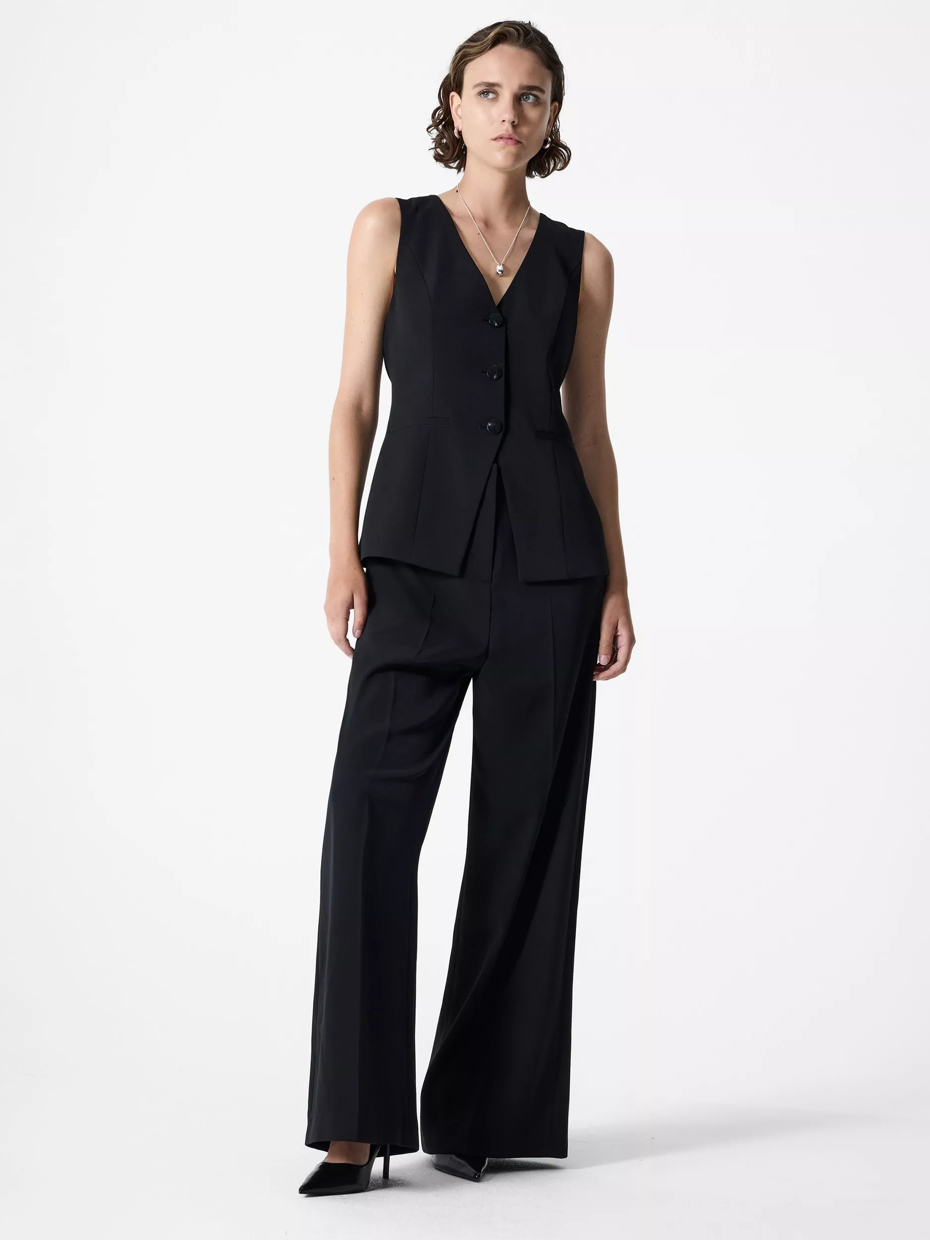 Step out in the best of both worlds with the Vinnie Tailored Jumpsuit. This jumpsuit offers a 2-in-1 appearance, from a sleeveless waistcoat-inspired button-down bodice to its wide leg trousers.