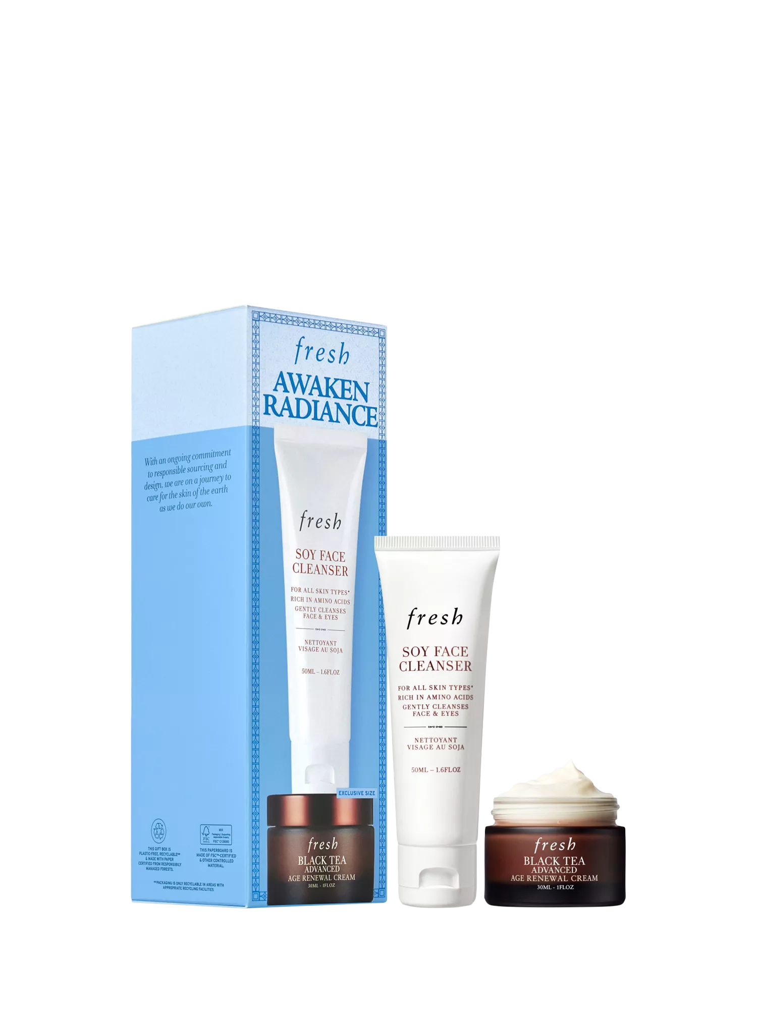 Indulge in clean, luminous skin with this duo that includes Soy Face Cleanser and Black Tea Advanced Age Renewal Cream.