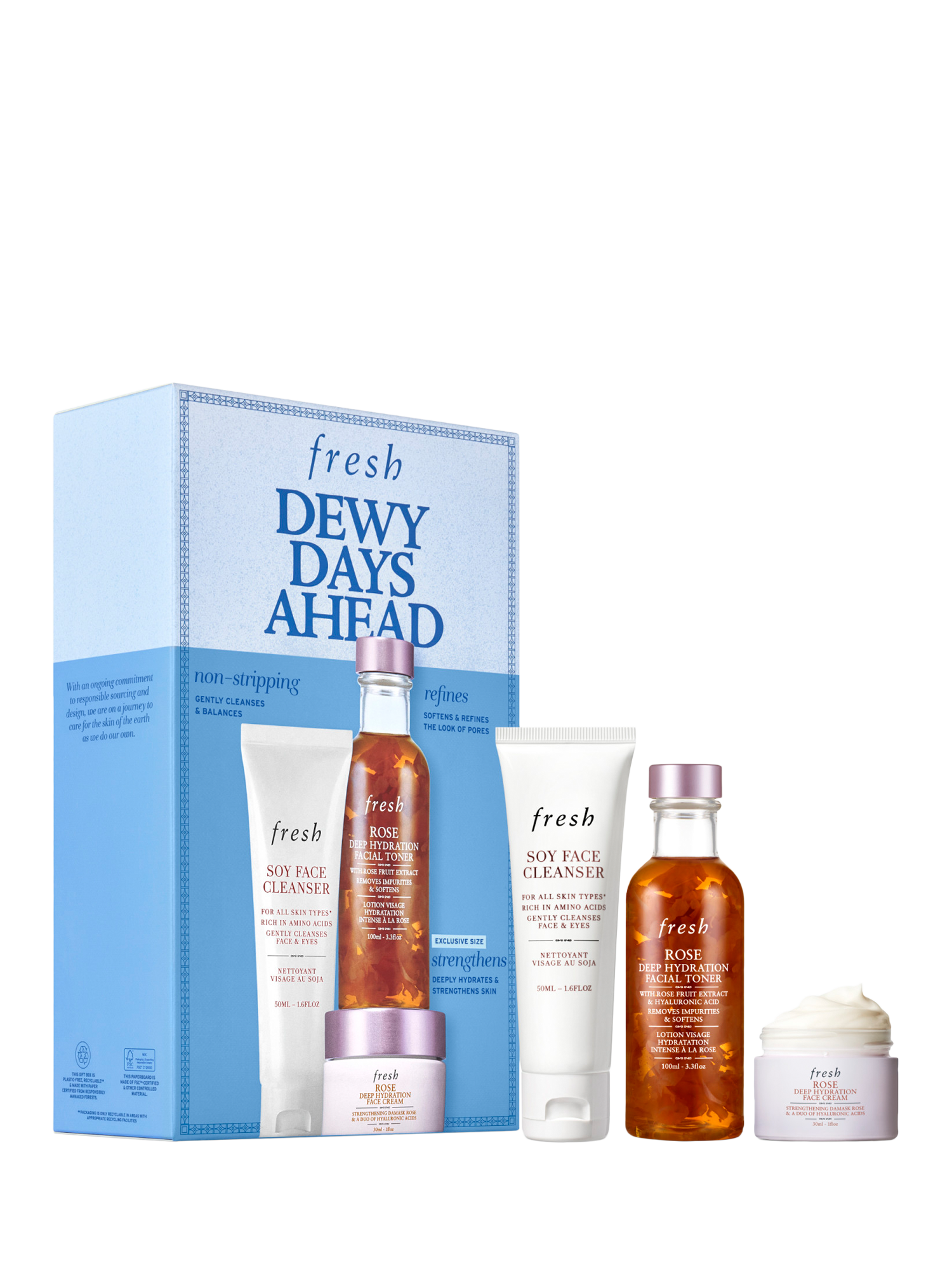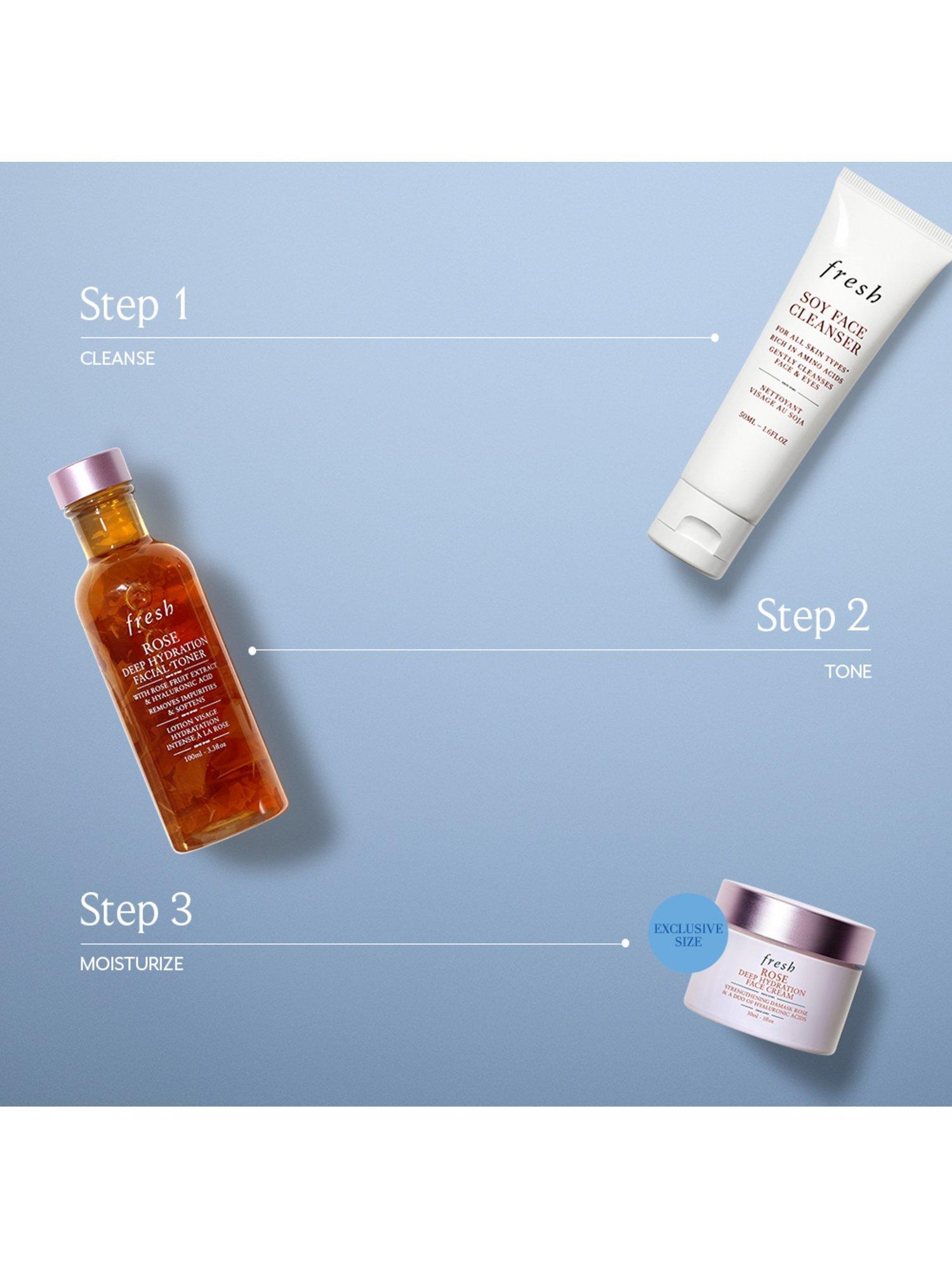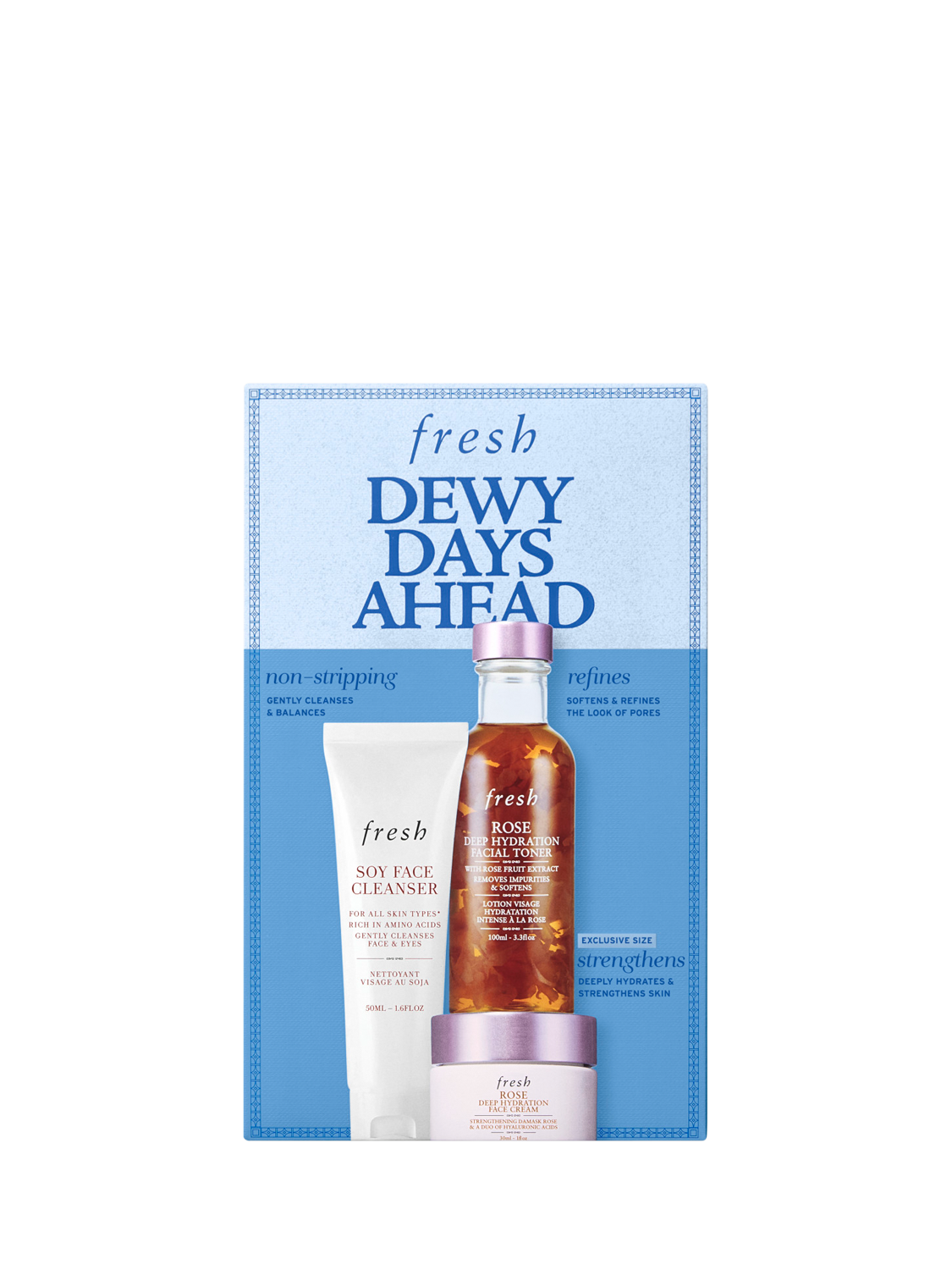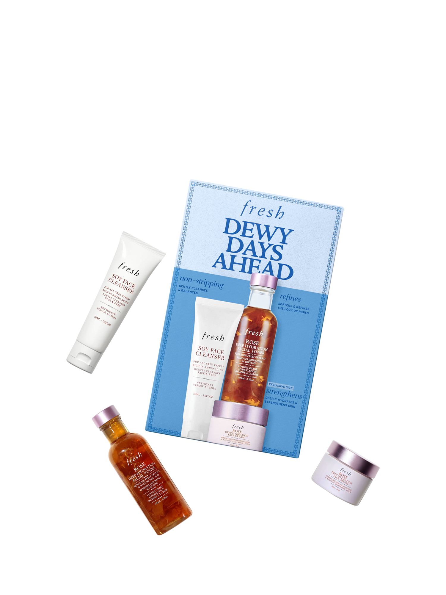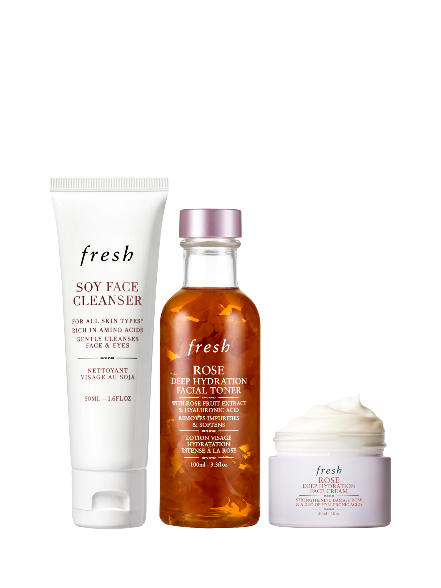 This skincare set features everyday hydration essentials. Our non-stripping Soy Face Cleanser gently cleanses and removes makeup and Rose Toner refines the look of pores. Finish with Rose Face Cream to strengthen the skin's barrier for plump, dewy skin.