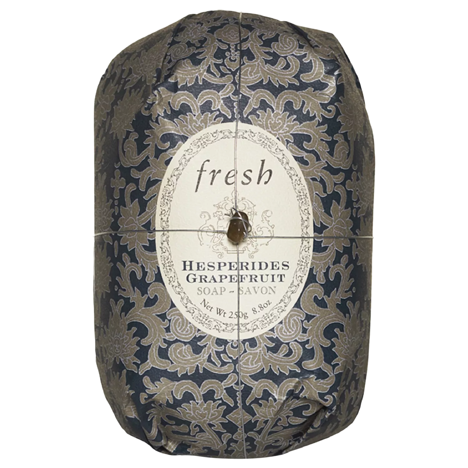 In the Fresh spirit of artisanship, each soap is hand-wrapped, tied with a delicate wire, and topped with a semi-precious stone.