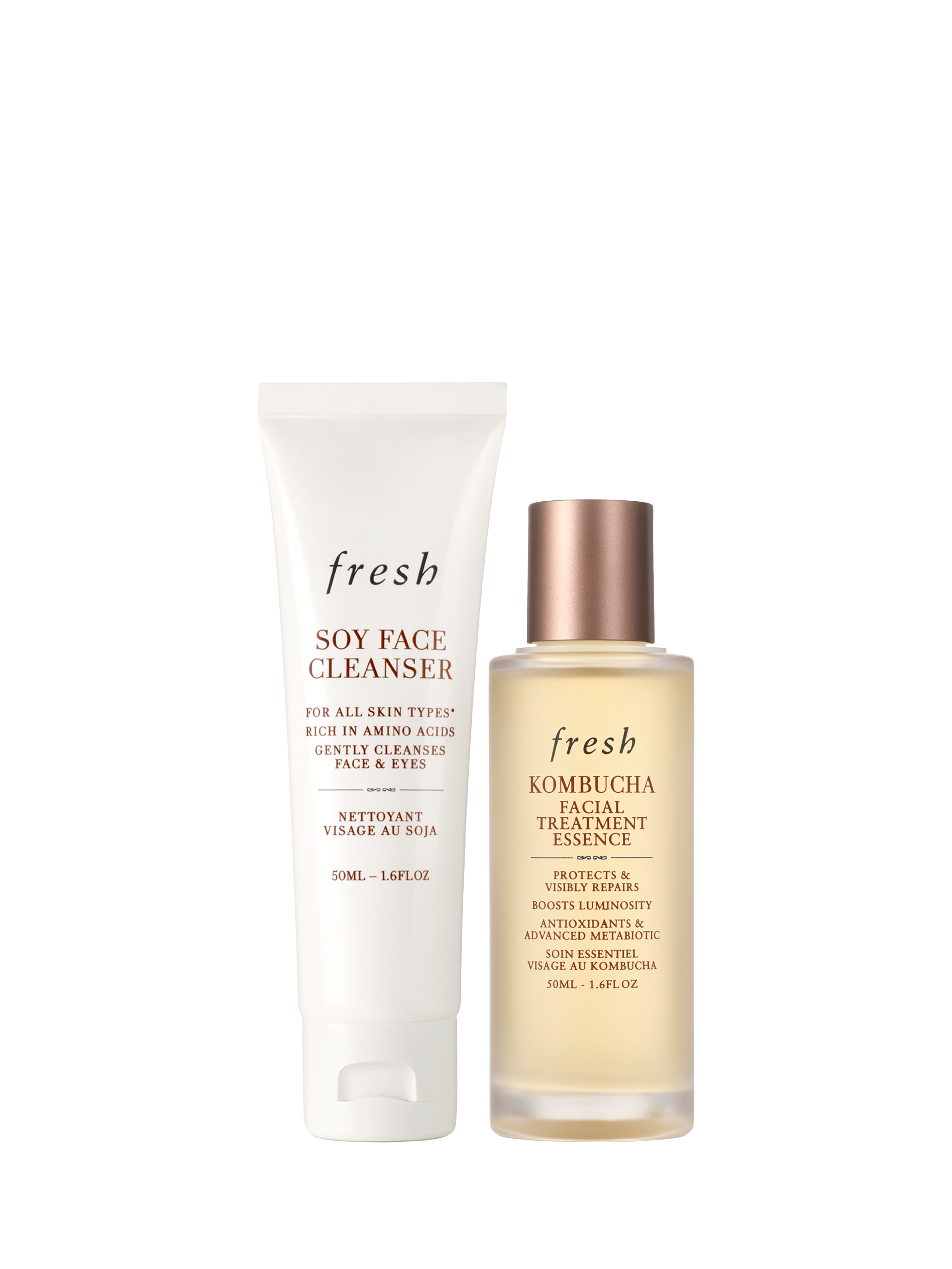 Prep your skin for luminosity with this duo that includes travel sizes of Soy Face Cleanser & Kombucha Facial Treatment Essence.