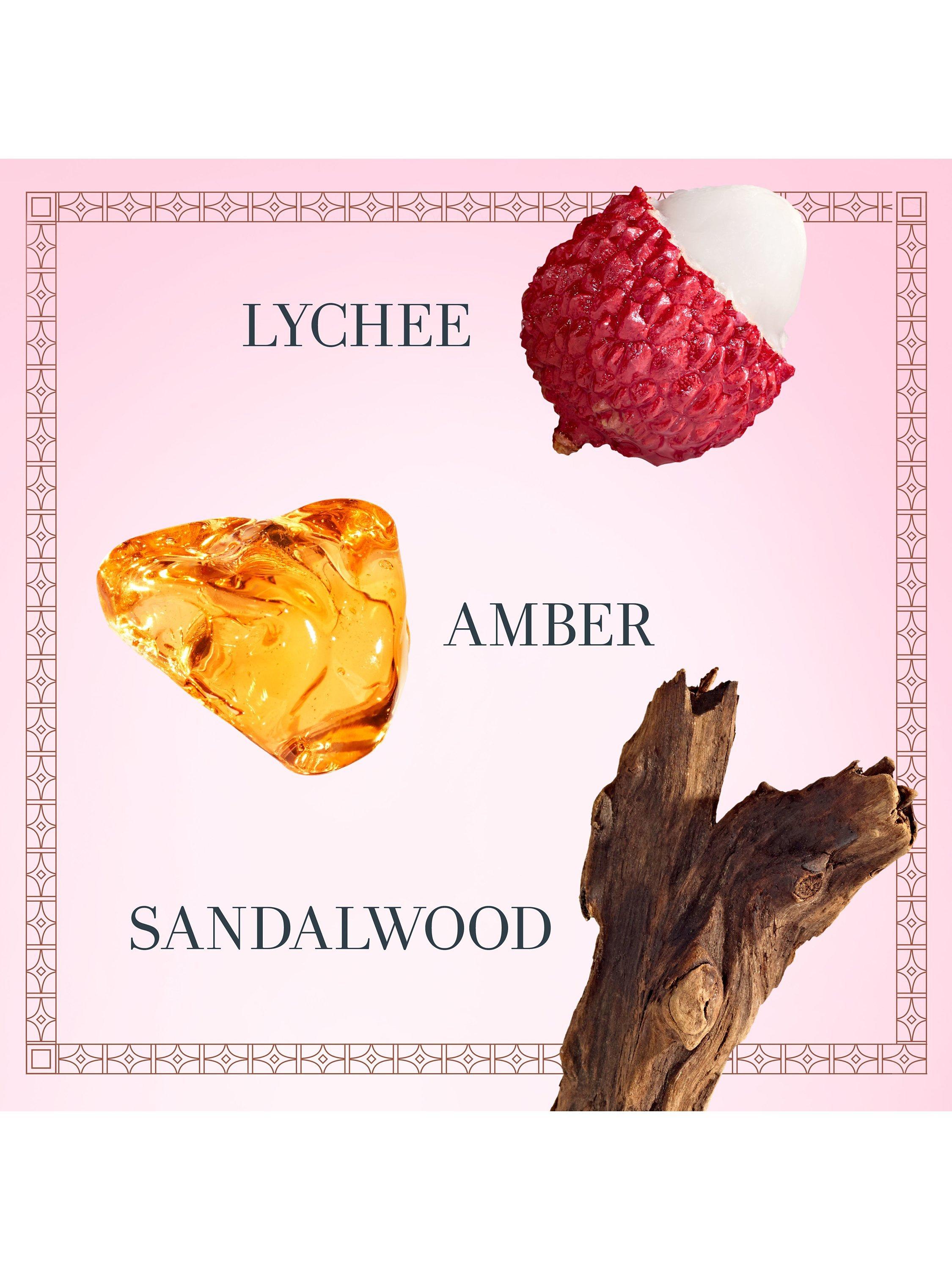 Find a serene moment to warm your soul with our Sugar Lychee Eau de Parfum, featuring a luscious and sweetened heart of fruity lychee.
