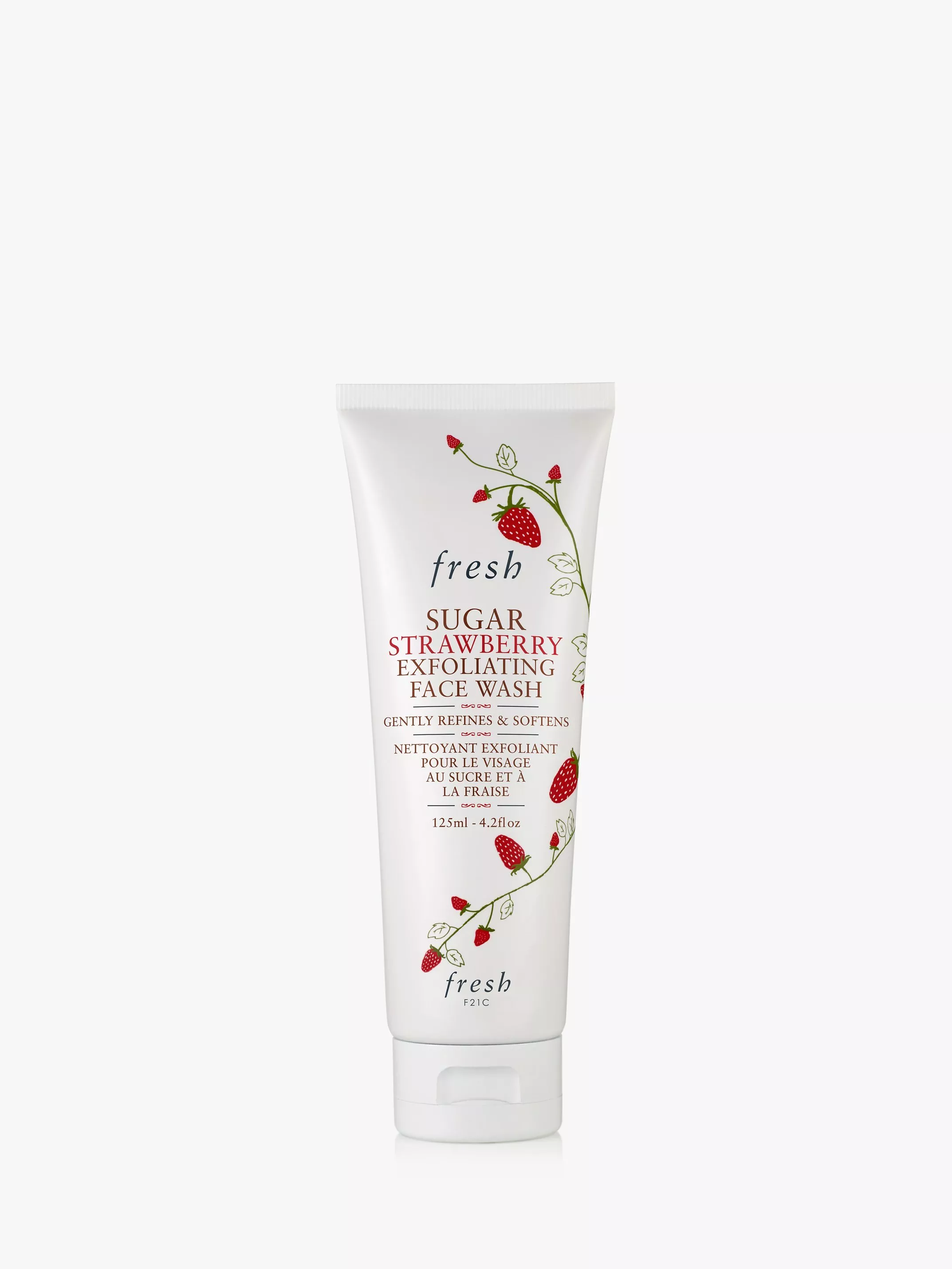 A gentle exfoliating face cleanser that removes impurities and excess oil—without drying - while refining the look of pores for smooth, soft skin. Made with real strawberries and smoothing sugar crystals that melt as they polish; this gentle face wash exfoliates and cleanses all in one while smoothing the skin’s texture and maintaining its natural moisture.