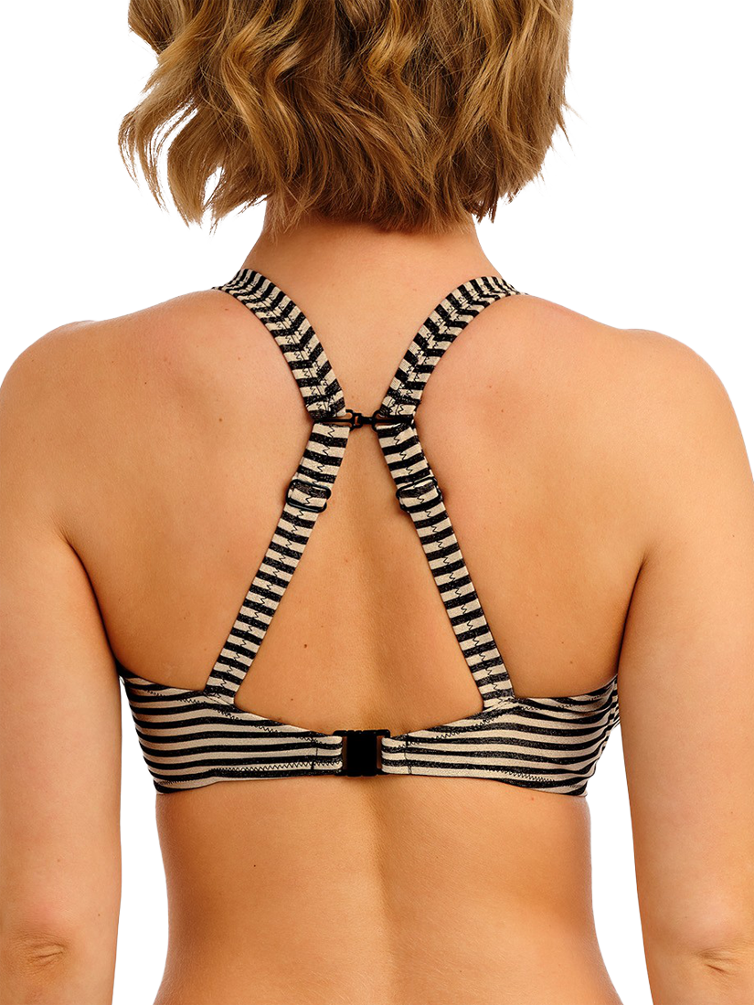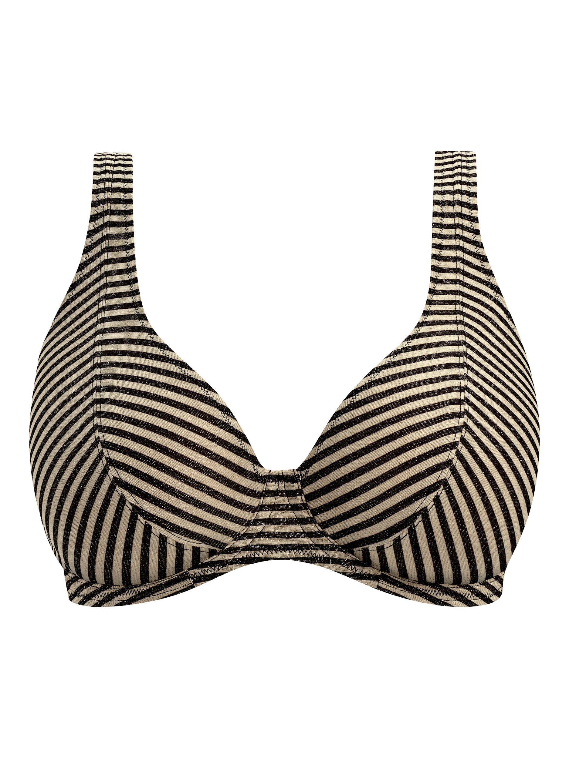 A shimmering metallic yarn fabric catches the light, giving a luxurious glow that's perfect for those sun-soaked days. The high apex design provides flattering support and a striking silhouette.