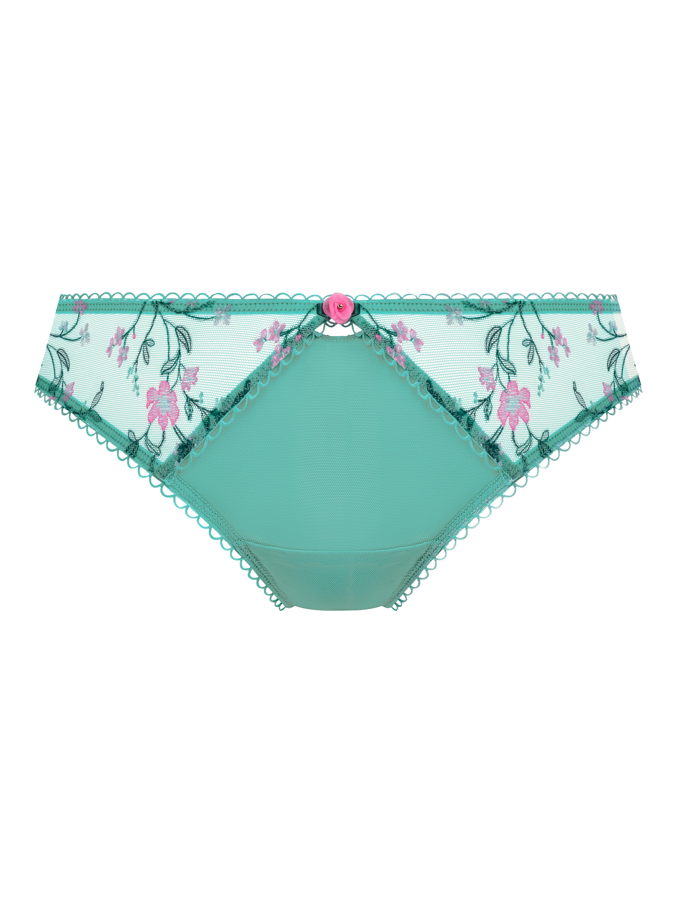 Blending sultry sheers and floral embroidery, the Love Crush brief features beautiful printed all-over embroidery in a floral design and a keyhole detail at centre front. The double-layer mesh back with folded leg edge offers a smooth finish for minimal visible panty line. Also features a gathered back seam for shaping.