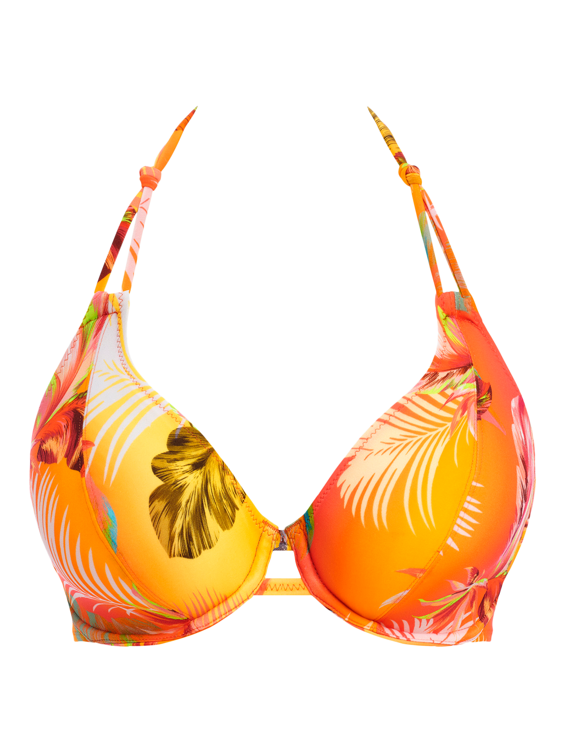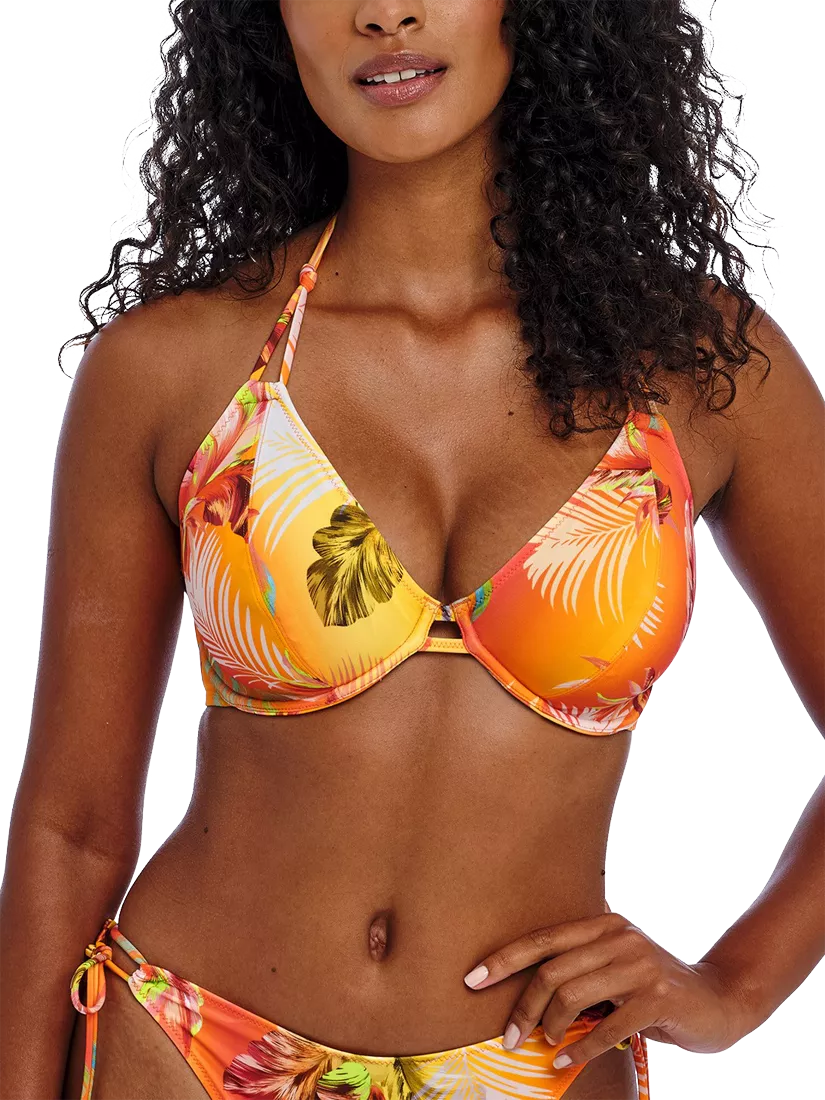 The Underwire Halter Bikini Top features a sexy low plunging neckline and underwire in a bandless style for less coverage.