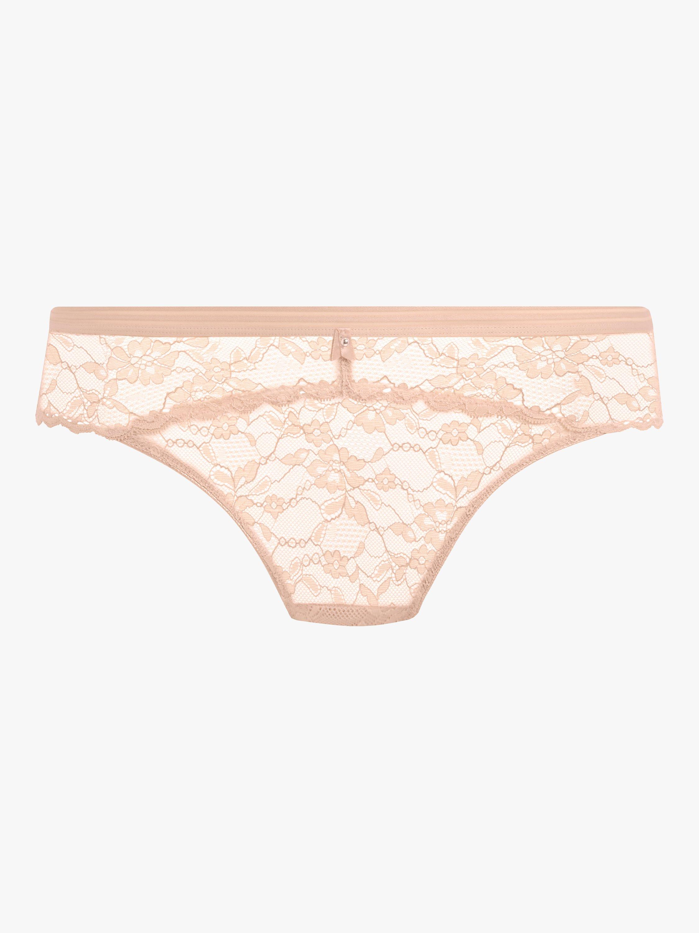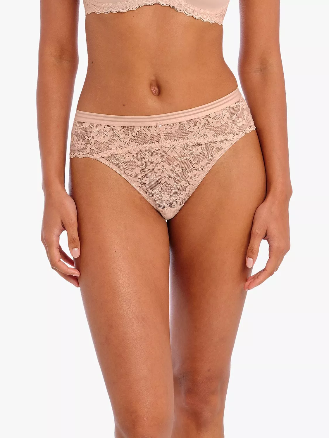 Showcasing delicate stretch lace and scallop detailing. A contemporary cut-out detail alongside a contrasting stripe waistband completes the look.